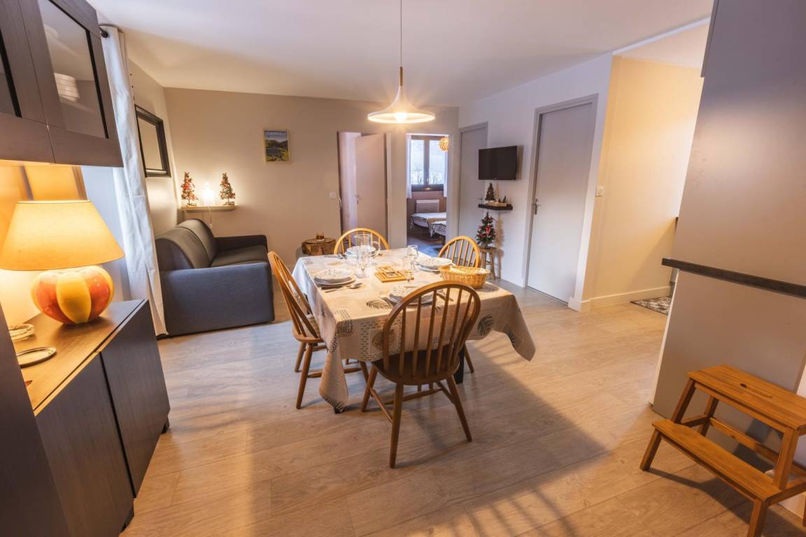 „Logement conforme au descriptif, très propre, fonctionnel et très bien situé avec une vue splendide sur la montagne enneigée. Très bon accueil de la propriétaire. Pour éviter les projections dans le micro ondes, ce serait bien de l'équiper d'une cloche et d'un kit de démarrage pour les vacanciers (sel, poivre...)“