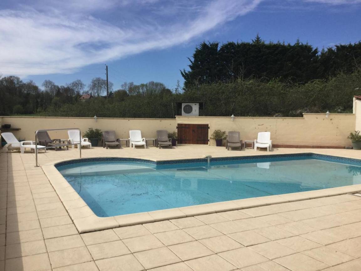 „Excellent séjour dans une belle villa très spacieuse, prestations conformes au descriptif sans mauvaises surprises. Chambres confortables avec salles de bains individuelles, très belle et grande piscine dont nous n'avons malheureusement guère profité en raison d'une météo peu favorable. Site arboré, en pleine campagne, très calme à l'exception des aboiements des chiens durant la nuit ! Connexion au WiFi aisée et rapide. Excellent contact préalable avec les propriétaires, accueil sur place par une personne déléguée par ceux-ci.“