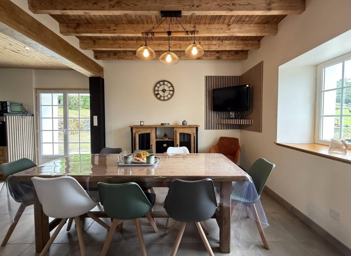 „Des années que nous louons en gîte et c'est la première fois que nous sommes pleinement satisfait tant au niveau de la qualité de l'accueil que du confort que propose le gîte. Celui-ci est moderne, d'une propreté irréprochable. Très bien équipé. Il ne manque rien. On s'y sent très bien, même mieux qu'à la maison. De la terrasse, une vue sublime et nous en avons profité au maximum. Un grand merci à Fabienne, Josette, Jean et Germaine qui ont pris de leur temps pour tous ces échanges et nous avoir permis d'assister aux activités de l'exploitation et ainsi apprendre beaucoup sur le métier d'éleveurs et sur la fabrication du fromage. C'est avec un immense plaisir que nous reviendrons très vite. Les bordelais. N et P.“
