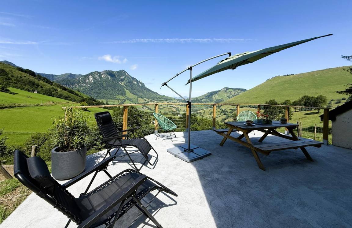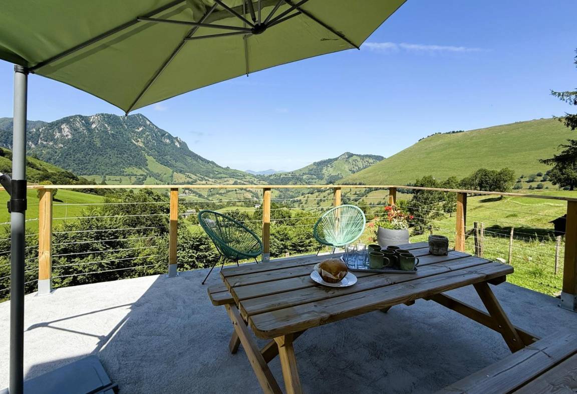 Die Gîte Gliget bietet vor allem einen unglaublichen Panoramablick auf die Berge des Aspe-Tals in den Pyrenäen des Béarn.
