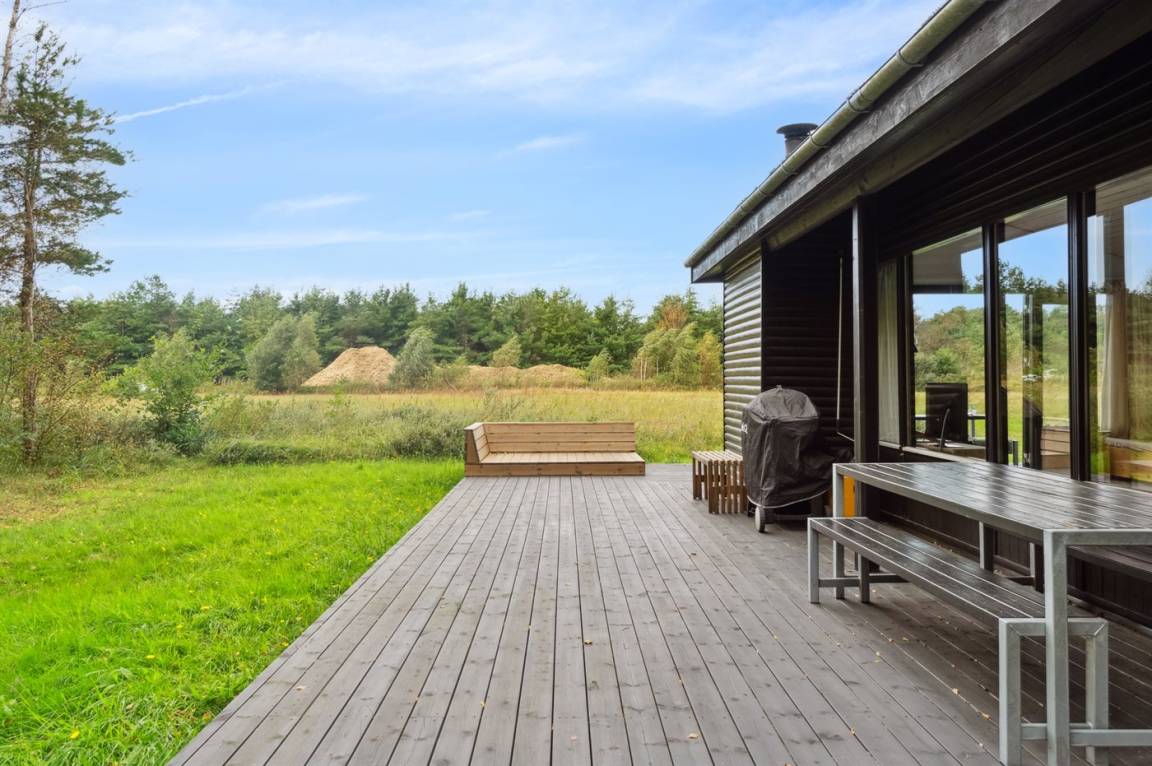 DraußenDie Ferienunterkunft liegt auf einem 5540 m² großen Naturgrundstück. Die Entfernung zum Meer beträgt 2500 m. Die nächste Einkaufsmöglichkeit liegt 4000 m entfernt. In einem Abstand von 1500 m gibt es einen Golfplatz. Es steht ein 25 m² Terrassenareal zur Verfügung. Schaukel. Es ist ein Ladestecker für Elektroautos installiert. Parkplatz auf dem Grundstück.