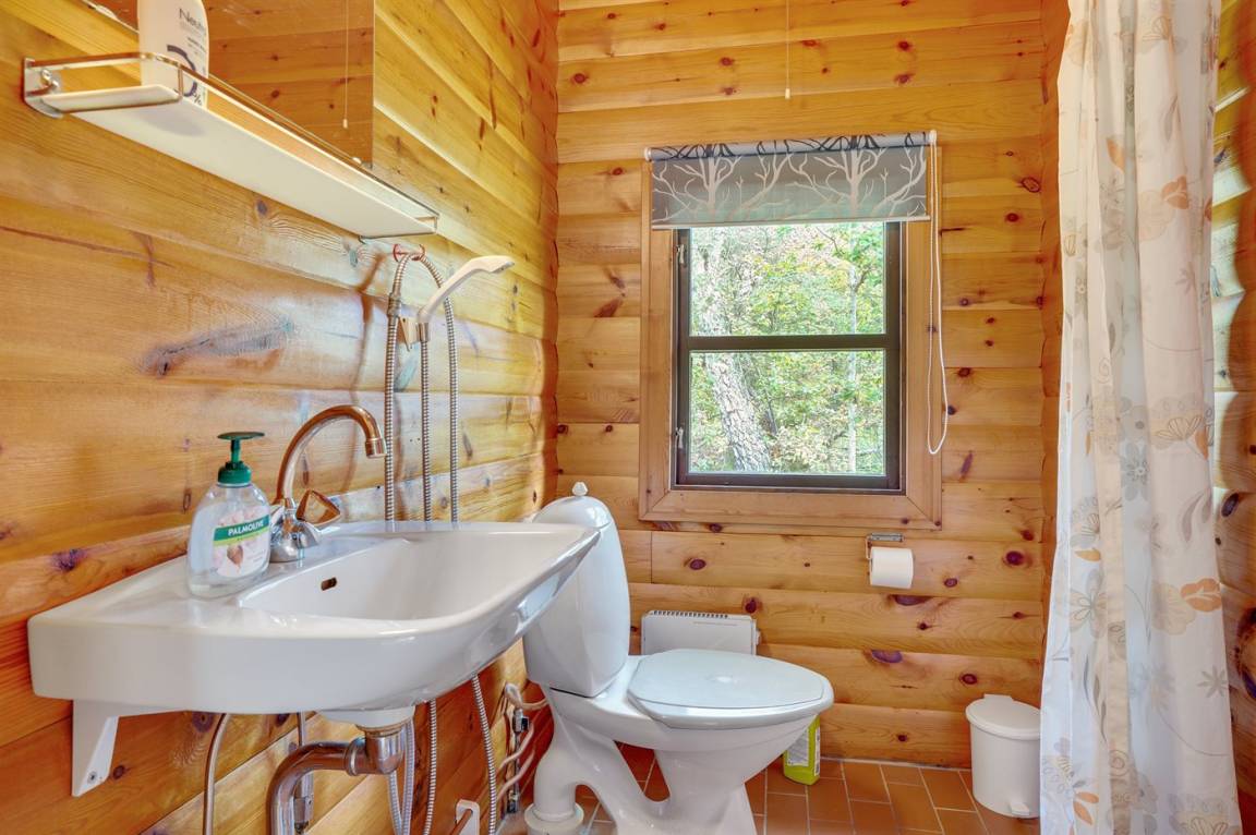 DraußenDie Ferienunterkunft liegt auf einem 2000 m² großen Naturgrundstück. Die Entfernung zum Meer beträgt 700 m. Die nächste Einkaufsmöglichkeit liegt 3000 m entfernt. Außerdem gibt es 15 m² überdachte Terrasse. Außendusche. Parkplatz auf dem Grundstück.