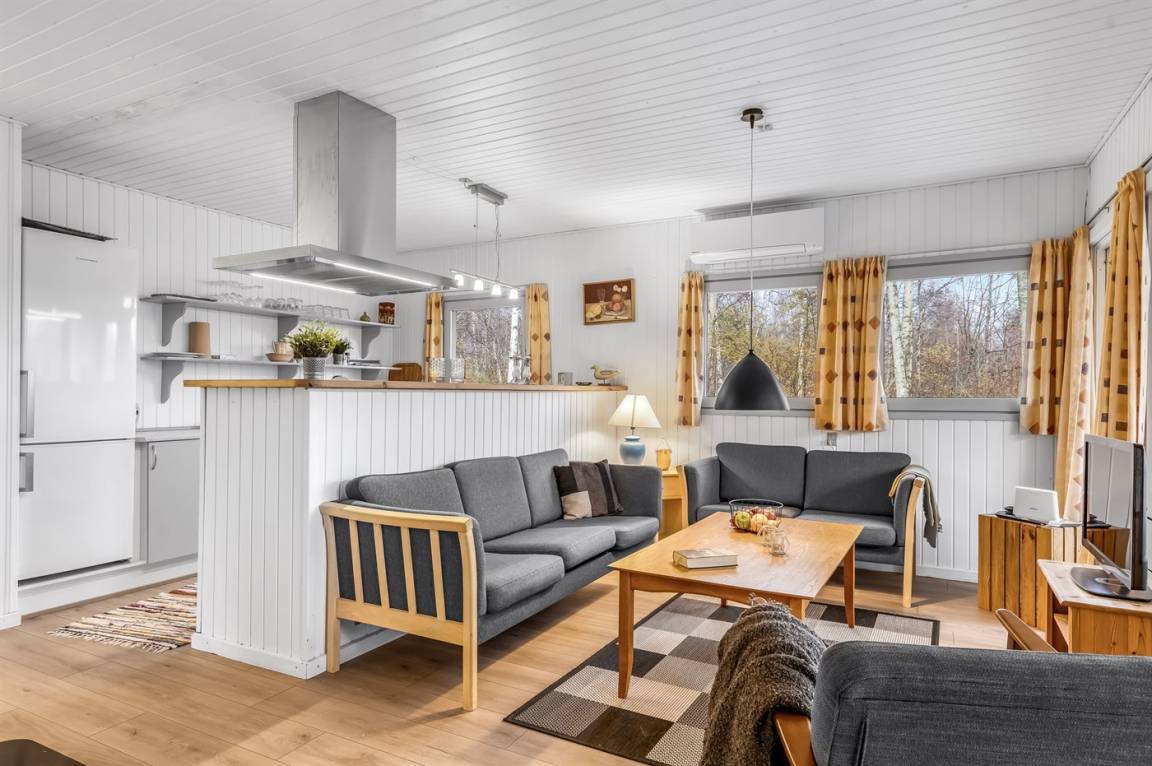 Das Ferienhaus eignet sich für 6 Personen. 2 der Schlafplätze eignen sich jedoch nur für größere Kinder (4-11 Jahre). Die Ferienunterkunft hat eine Wohnfläche von 64 m² und wurde 1990 gebaut. 2022 wurde die Ferienunterkunft renoviert. Es ist erlaubt 1 Haustier mitzubringen. Die Ferienunterkunft ist mit energiefreundlicher Luft-Luft- Wärmepumpe ausgestattet. Die Ferienunterkunft ist mit Waschmaschine ausgestattet. Wäschetrockner. Tiefkühlmöglichkeit mit 50 Liter Nutzinhalt. Es gibt außerdem einen Kaminofen. Für die jüngsten Feriengäste ist 1 Kinderhochstuhl vorhanden.