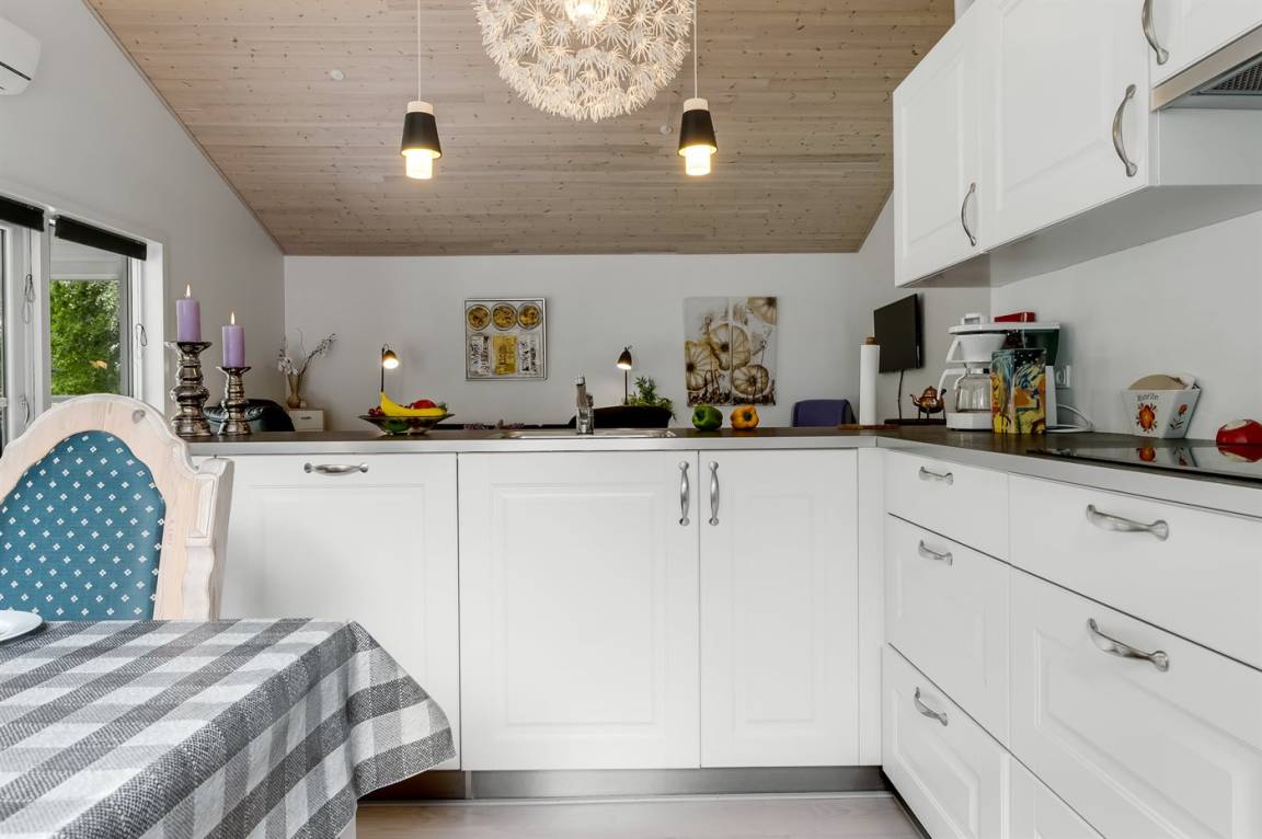 Das Ferienhaus ist geschmackvoll eingerichtet und verfügt über drei großzügige Schlafzimmer mit bequemen Betten. Die offene, gut ausgestattete Küche ist mit dem Wohn- und Essbereich kombiniert. Ein großes Fenster sorgt für viel Tageslicht und schafft eine helle, einladende Atmosphäre in dem zentralen Raum des Hauses – dem Ort, an dem ihr gemeinsam kochen, Brettspiele spielen oder einfach nur die Zeit miteinander genießen könnt.