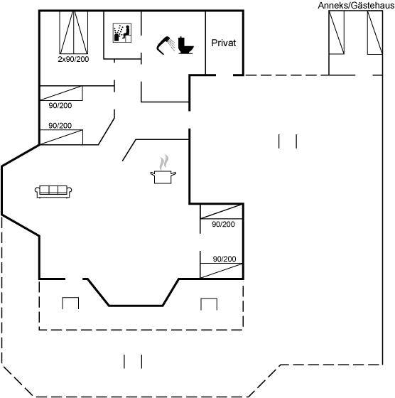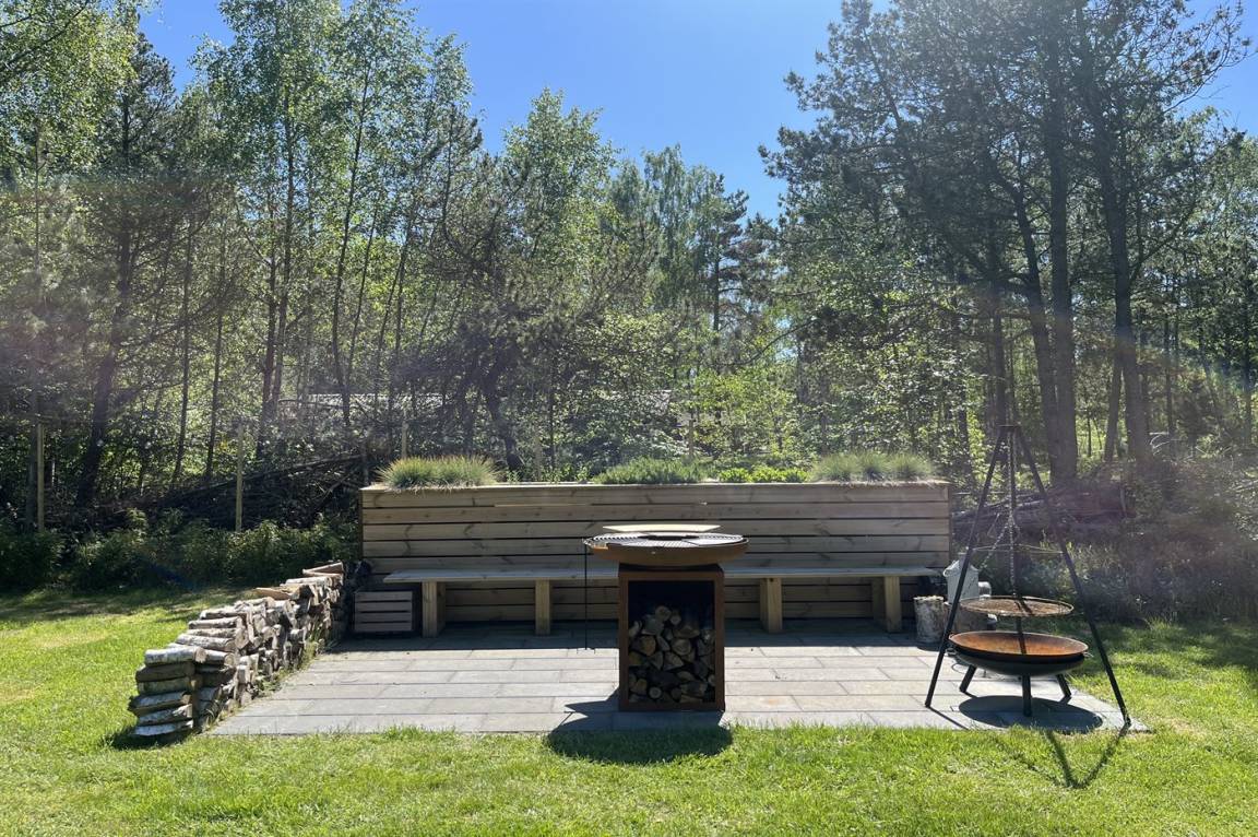 DraußenDie Ferienunterkunft liegt auf einem 1299 m² großen Naturgrundstück. Das Grundstück ist eingezäunt. Die Entfernung zum Meer beträgt 1000 m. Die nächste Einkaufsmöglichkeit liegt 1000 m entfernt. In einem Abstand von 15000 m gibt es einen Golfplatz. Es steht ein offenes Terrassenareal zur Verfügung. Die Entfernung zu einem Spielplatz beträgt 1000 m.Lagerfeuerstelle. Es steht ein Grill zur Verfügung. Es ist ein Ladestecker für Elektroautos installiert. Parkplatz auf dem Grundstück.
