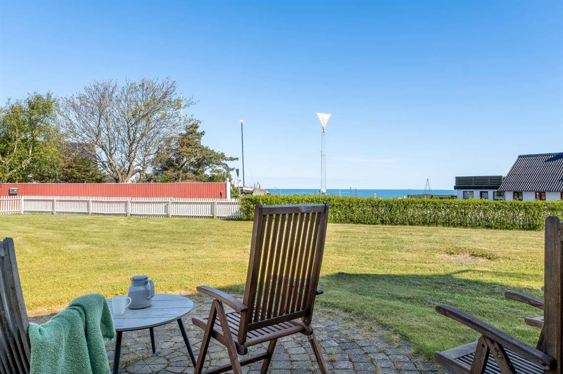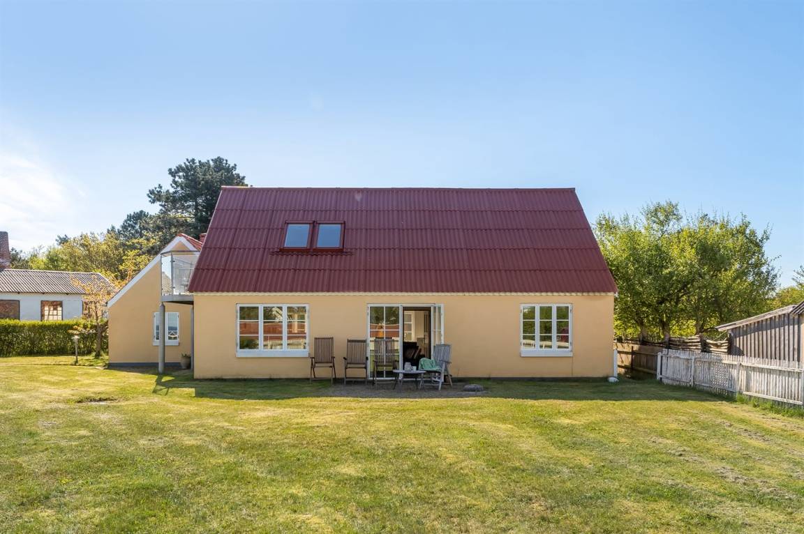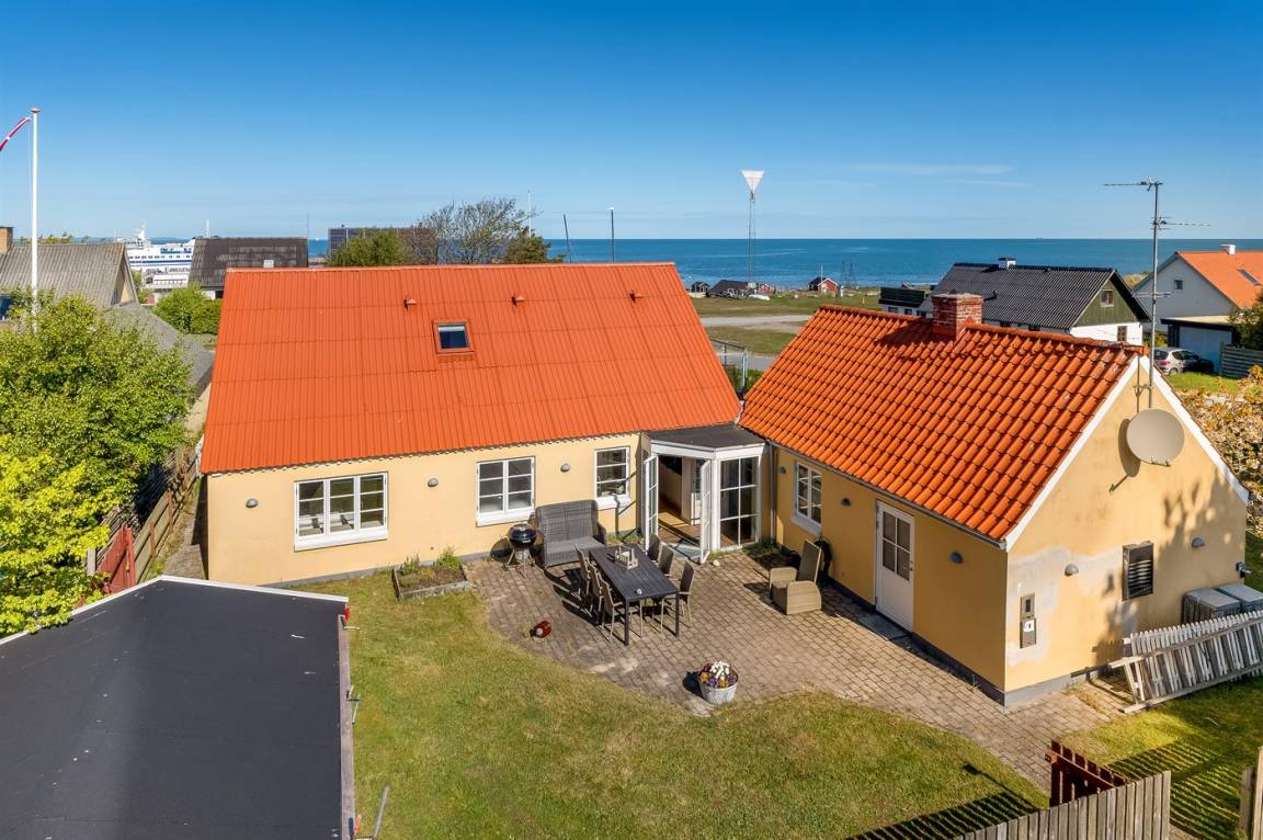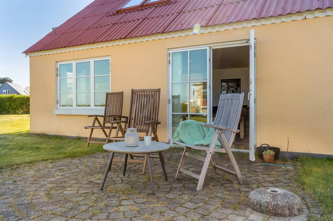 Schönes, renoviertes Ferienhaus mit zentraler Lage in Vesterø und Meeresblick auf Norder Rønnerne. Das Haus hat einen schönen, windgeschützten Innenhof.