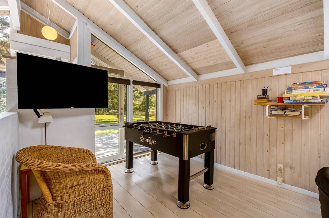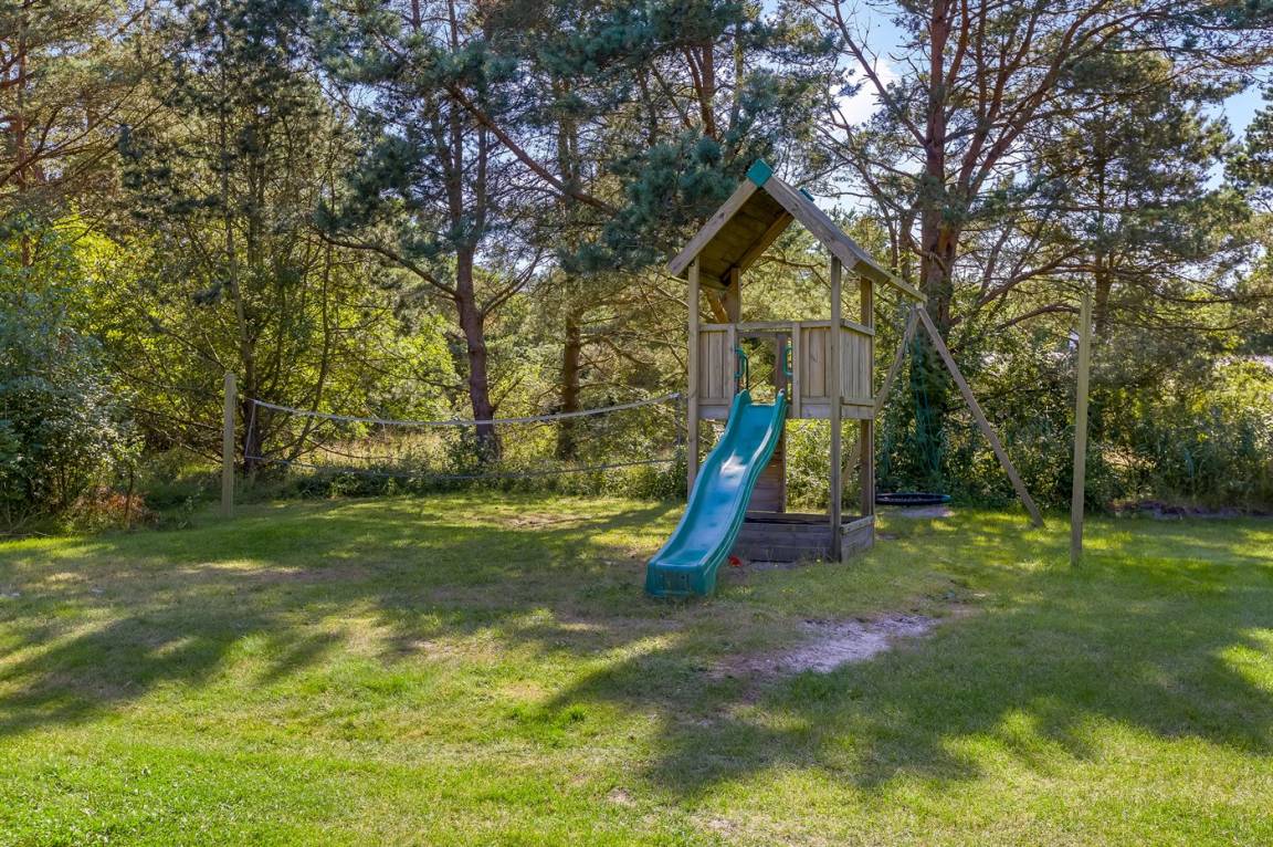 DraußenDie Ferienunterkunft liegt auf einem 5200 m² großen Naturgrundstück. Die Entfernung zum Meer beträgt 700 m. Die nächste Einkaufsmöglichkeit liegt 2000 m entfernt. In einem Abstand von 10000 m gibt es einen Golfplatz. Es steht ein offenes Terrassenareal zur Verfügung. Sandkasten. Spielturm. Fußballtor. Die Entfernung zu einem Spielplatz beträgt 2000 m. Parkplatz auf dem Grundstück.