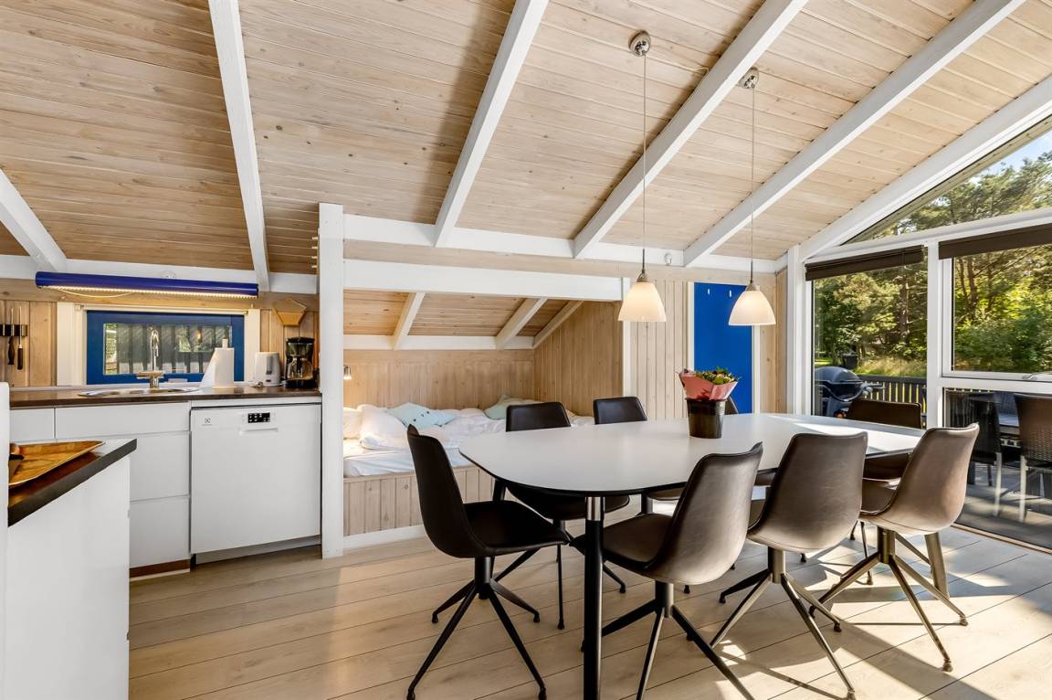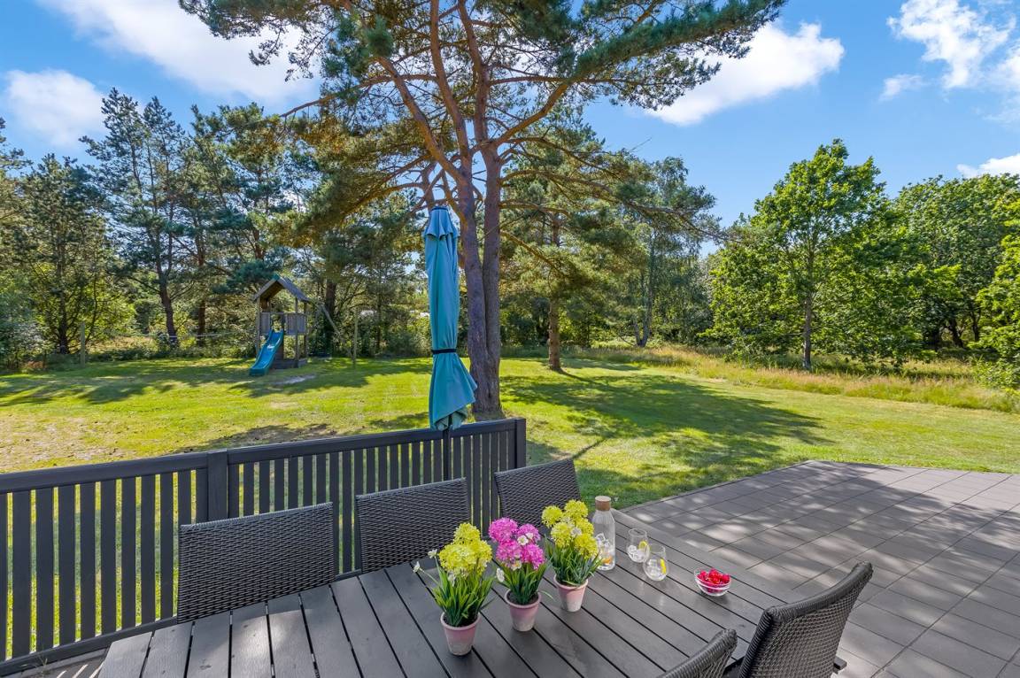 Ein sehr attraktives Ferienhaus mit allem denkbaren Komfort. Das Haus liegt auf einem Naturgrund in ruhiger Umgebung dicht an Læsøs schönstem Sand- und Dünenstrand.