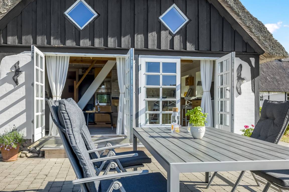 Du findest diese gemütlich und stilvoll eingerichtete Ferienwohnung in einem wunderschönen Landhaus mit Reetdach und 2 Flügel.