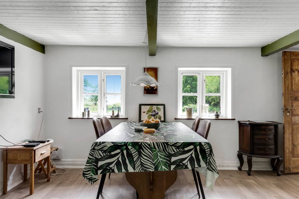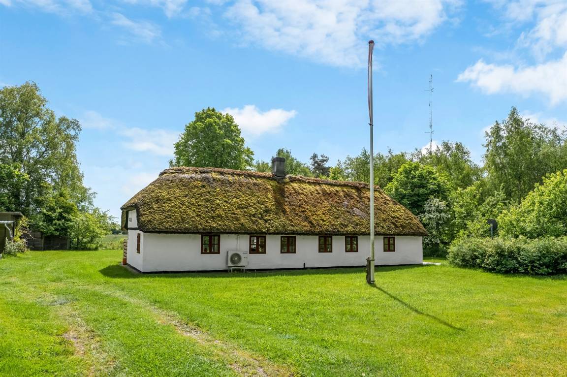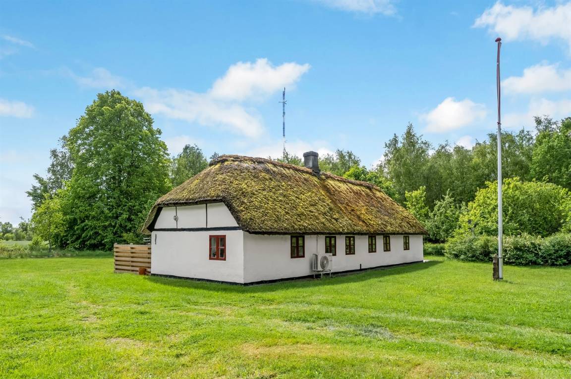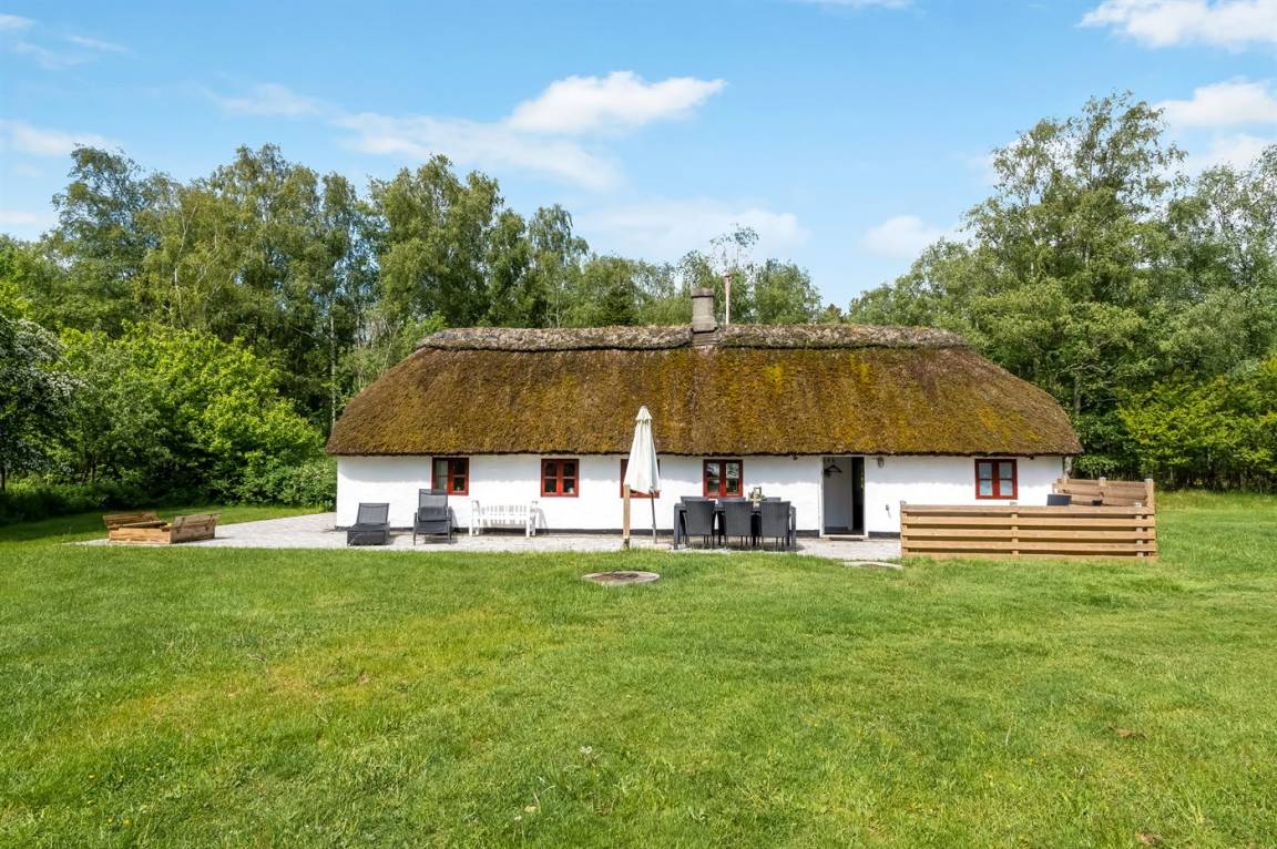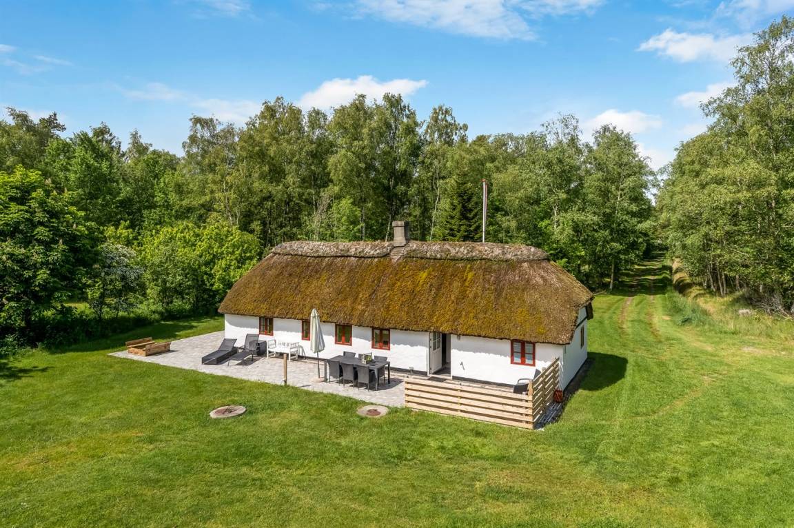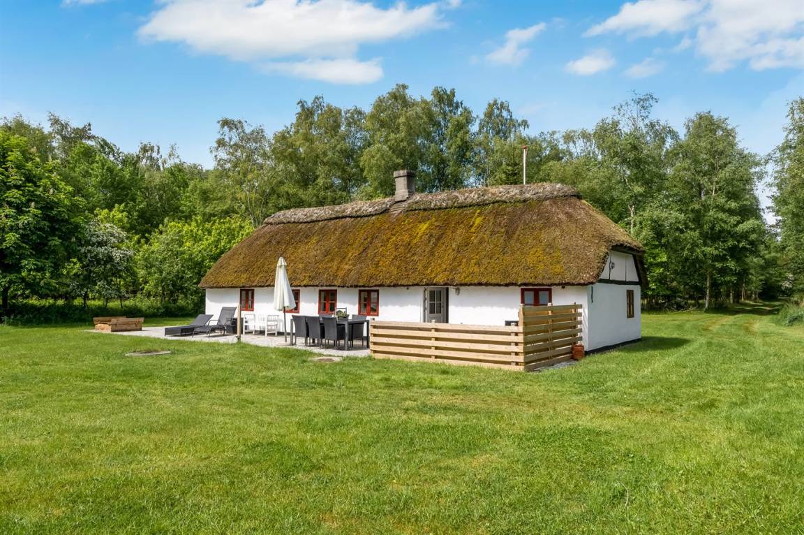 Reetgedecktes Bauernhaus in schöner Lage auf Læsø. Fahrt die gemütliche Einfahrt entlang des Birkenwaldes hinauf, wo ihr dieses authentische reetgedeckte Bauernhaus auf einem beeindruckend großen Grundstück von 10.500 m² mit Birkenwald und Garten rund ums Haus findet.