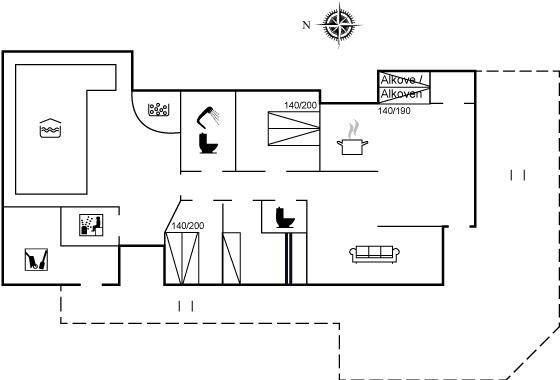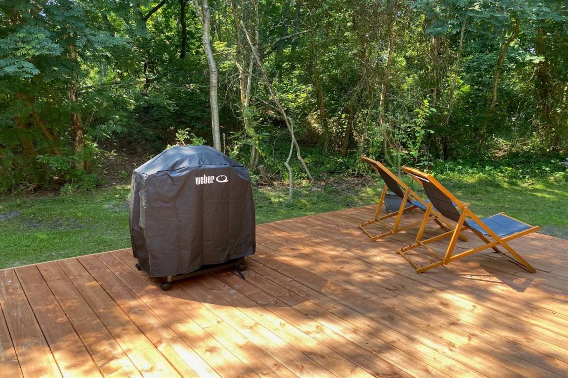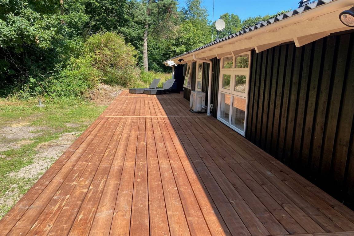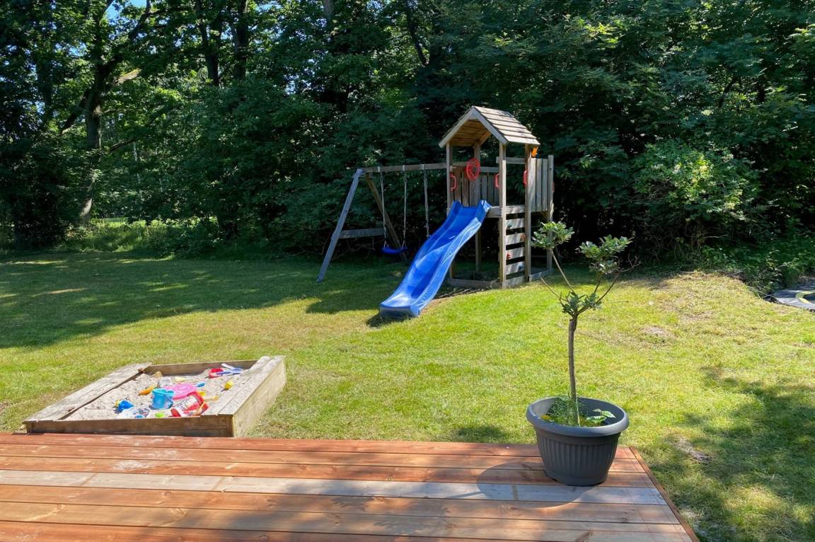 DraußenDie Ferienunterkunft liegt auf einem 2800 m² großen Naturgrundstück. Die Entfernung zum Meer beträgt 600 m. Die nächste Einkaufsmöglichkeit liegt 2900 m entfernt. Es steht ein 70 m² Terrassenareal zur Verfügung. Schaukel. Sandkasten. Trampolin. Spielturm. Es steht ein Grill zur Verfügung. Parkplatz auf dem Grundstück.
