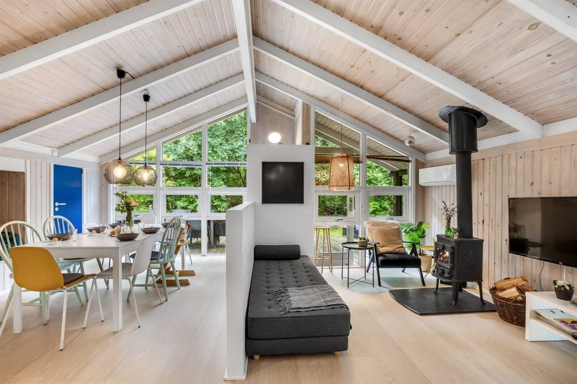 Das Ferienhaus eignet sich für 8 Personen sowie 1 Kleinkind bis zu 3 Jahren. 2 der Schlafplätze eignen sich jedoch nur für größere Kinder (4-11 Jahre). Die Ferienunterkunft hat eine Wohnfläche von 135 m² und wurde 1992 gebaut. Es ist erlaubt 1 Haustier mitzubringen. Die Ferienunterkunft ist mit energiesparender Wärmepumpe ausgestattet. Die Ferienunterkunft ist mit Waschmaschine ausgestattet. Tiefkühlmöglichkeit mit 10 Liter Nutzinhalt. Es gibt außerdem einen Kaminofen. Für die jüngsten Feriengäste ist 1 Kinderhochstuhl vorhanden.