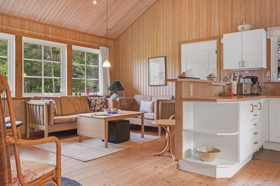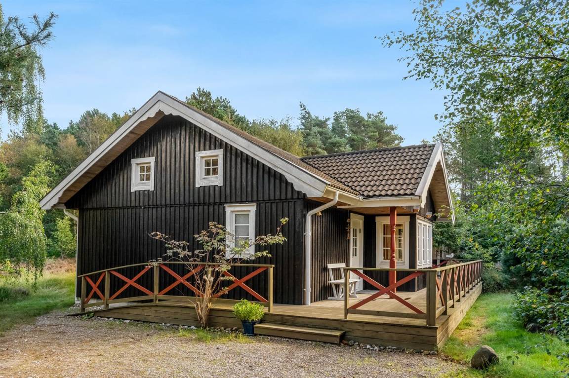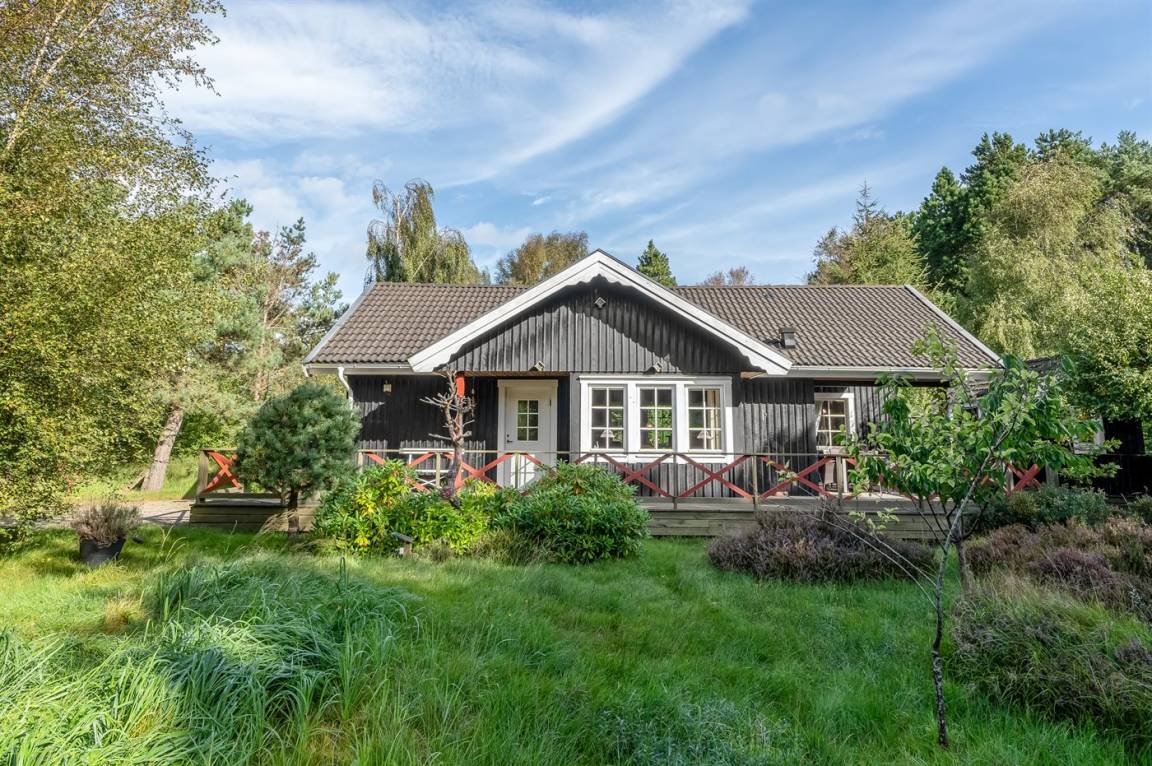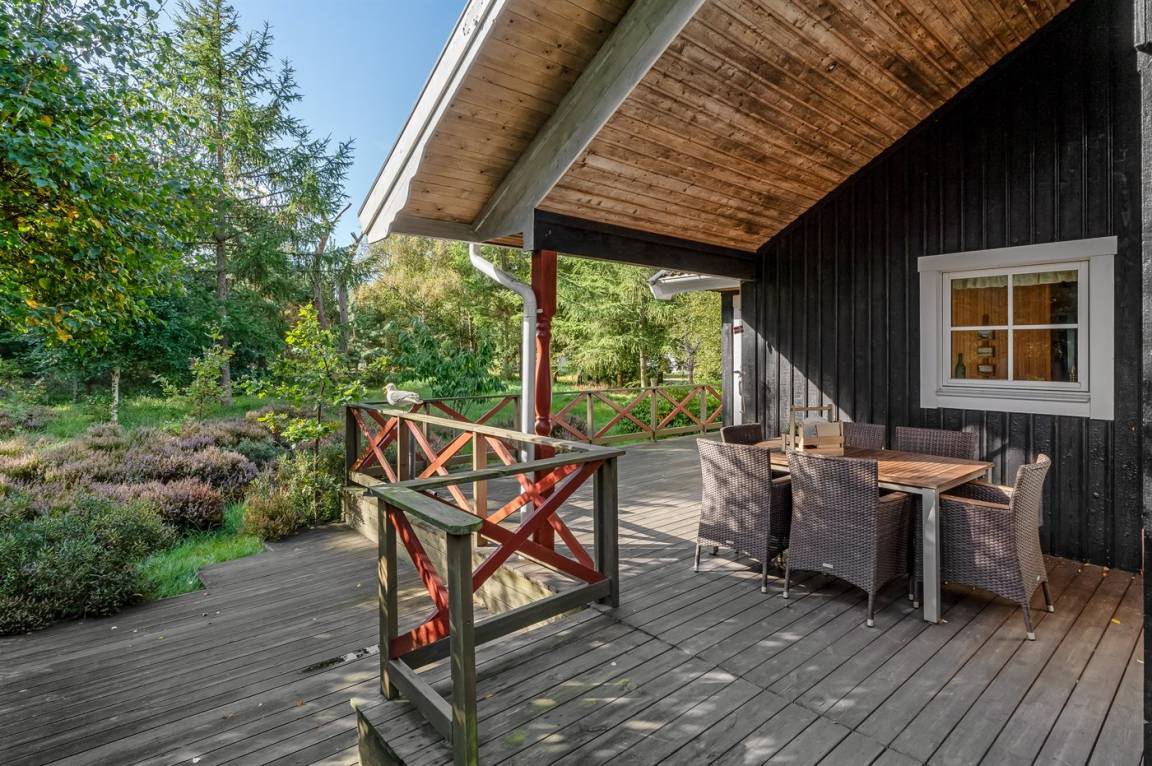 Dieses schwedische Balkenferienhaus. Schöne Lage auf sonnigem Heidegrundstück im kinderfreundlichen Ferienhausgebiet.