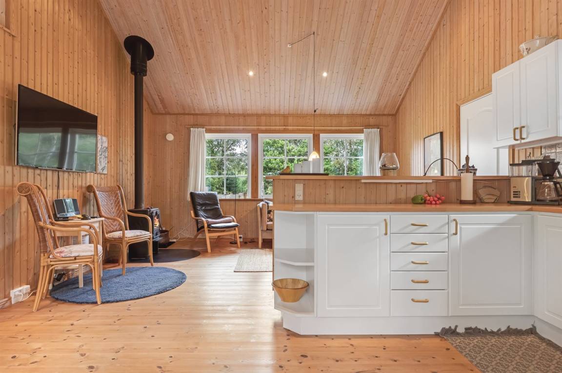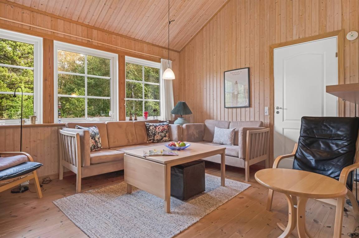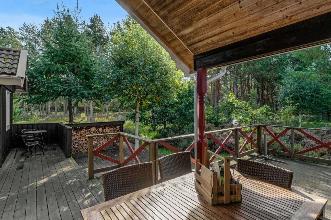 DraußenDie Ferienunterkunft liegt auf einem 1920 m² großen Naturgrundstück. Die Entfernung zum Meer beträgt 350 m. Die nächste Einkaufsmöglichkeit liegt 1400 m entfernt. Es steht ein 50 m² Terrassenareal zur Verfügung. Außerdem gibt es 16 m² überdachte Terrasse. Geräteraum.