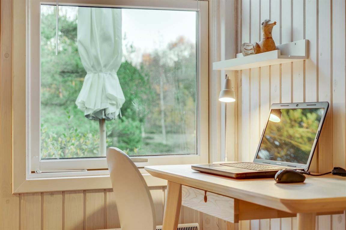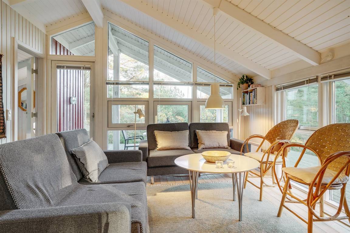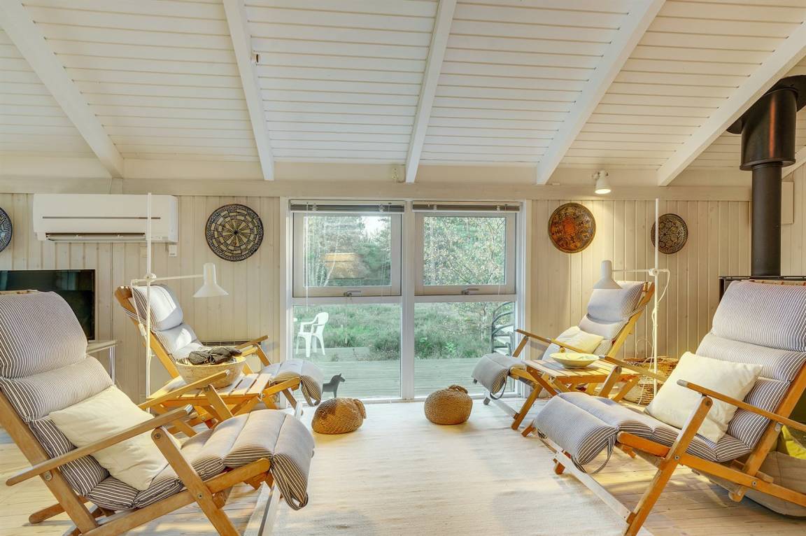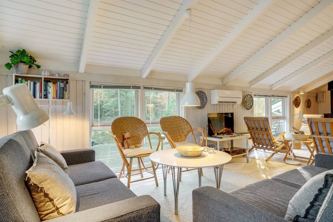 Ein funktionales und nettes Ferienhaus in ruhiger Umgebung auf einem Naturgrundstück gelegen, von dem ein großer Teil kurz geschnitten ist - mit kleinen Inseln aus Heidekraut.