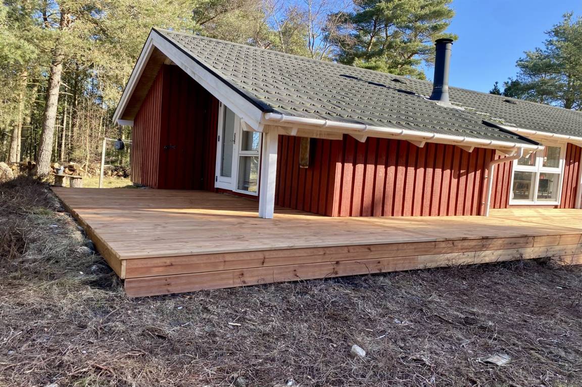 Zum Haus gehört eine schöne, neue und teilweise überdachte Terrasse, auf der du viele Stunden im Freien verbringen kannst.