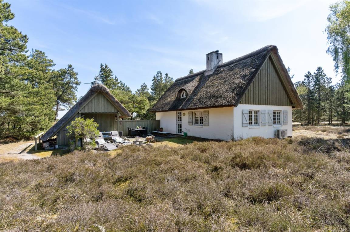 Schönes 2-stöckiges Ferienhaus aus Stein mit Reetdach auf einem schönen Heidegrundstück.