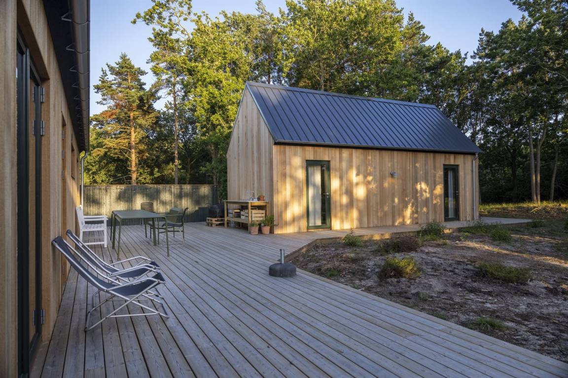 Die Ferienunterkunft liegt auf einem 2000 m² großen Naturgrundstück. Die Entfernung zum Meer beträgt 200 m. Die nächste Einkaufsmöglichkeit liegt 3000 m entfernt. In einem Abstand von 2000 m gibt es einen Golfplatz. Es steht ein offenes Terrassenareal zur Verfügung. Außerdem gibt es überdachte Terrasse. Die Entfernung zu einem Spielplatz beträgt 3000 m.Lagerfeuerstelle. Außendusche. Es beteht die Möglichkeit das Essen in der Außenküche zuzubereiten. Gasgrill steht zur Verfügung. Parkplatz auf dem Grundstück.