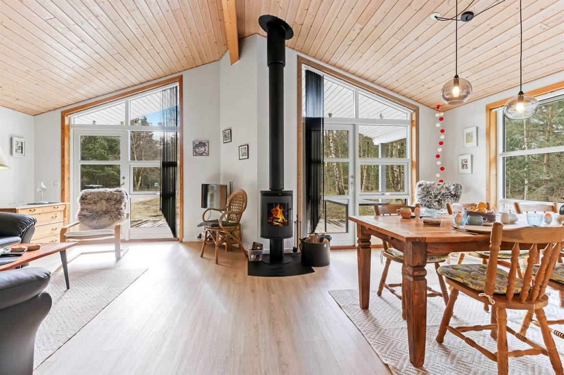 Dieses schöne, geräumige Ferienhaus liegt auf einem großen, geschützten Naturgrundstück mit Blick über die Heide und Baumbestand.
