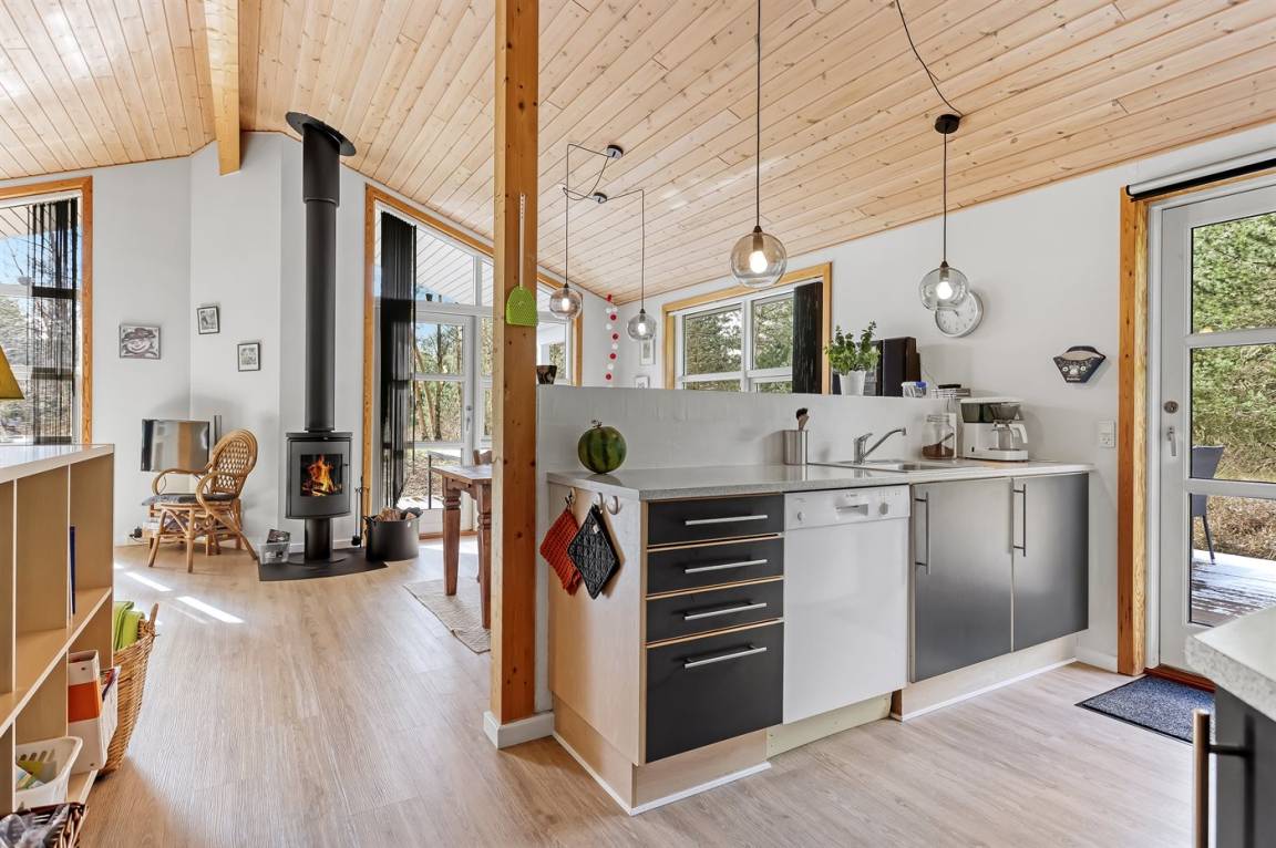 DraußenDie Ferienunterkunft liegt auf einem 1296 m² großen Naturgrundstück. Die Entfernung zum Meer beträgt 400 m. Die nächste Einkaufsmöglichkeit liegt 1000 m entfernt. Es steht ein Grill zur Verfügung. Parkplatz auf dem Grundstück.