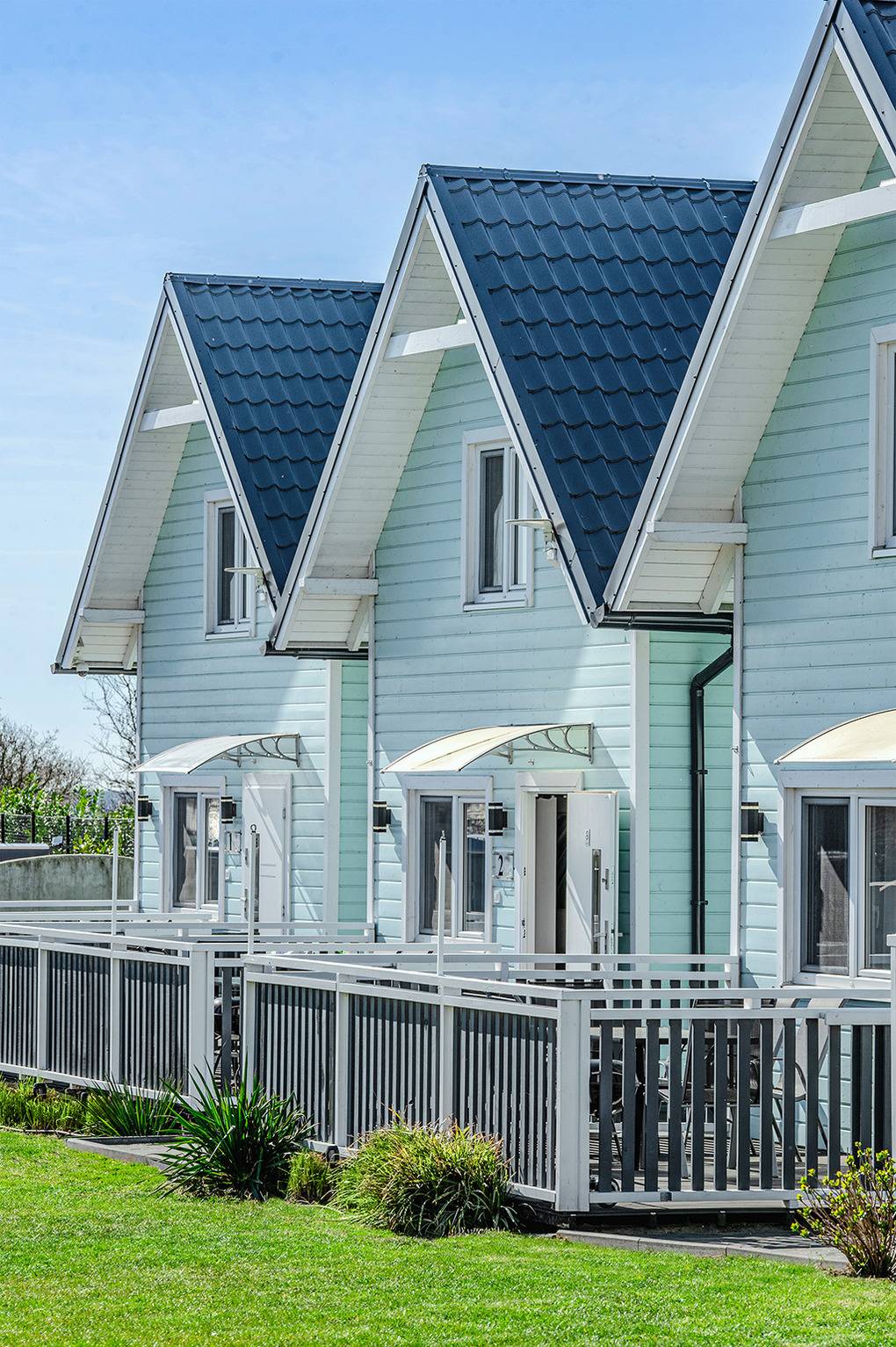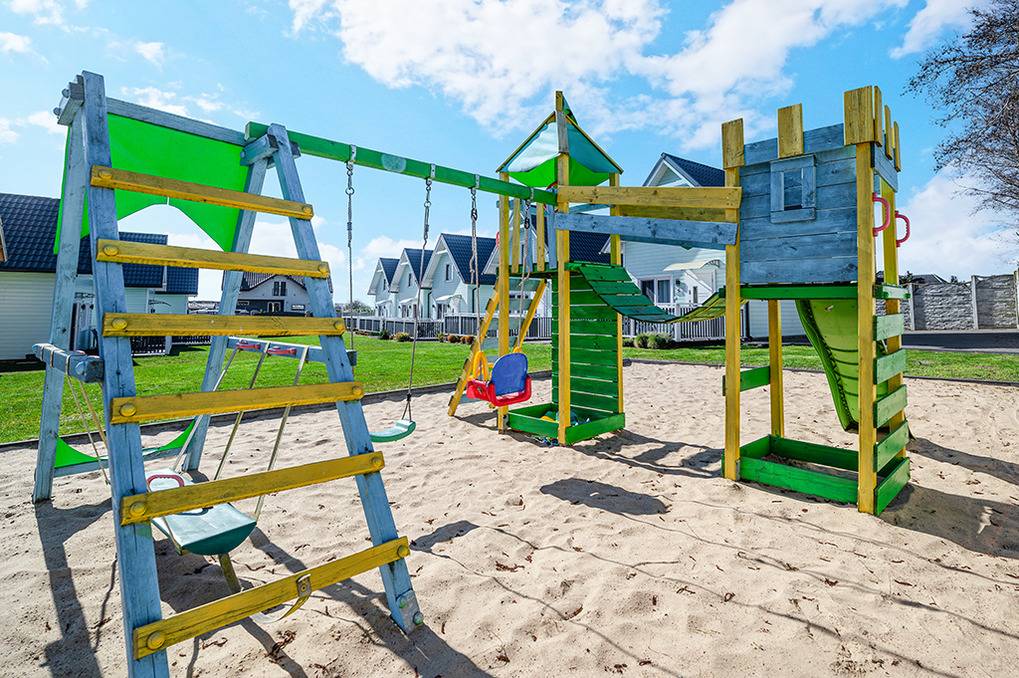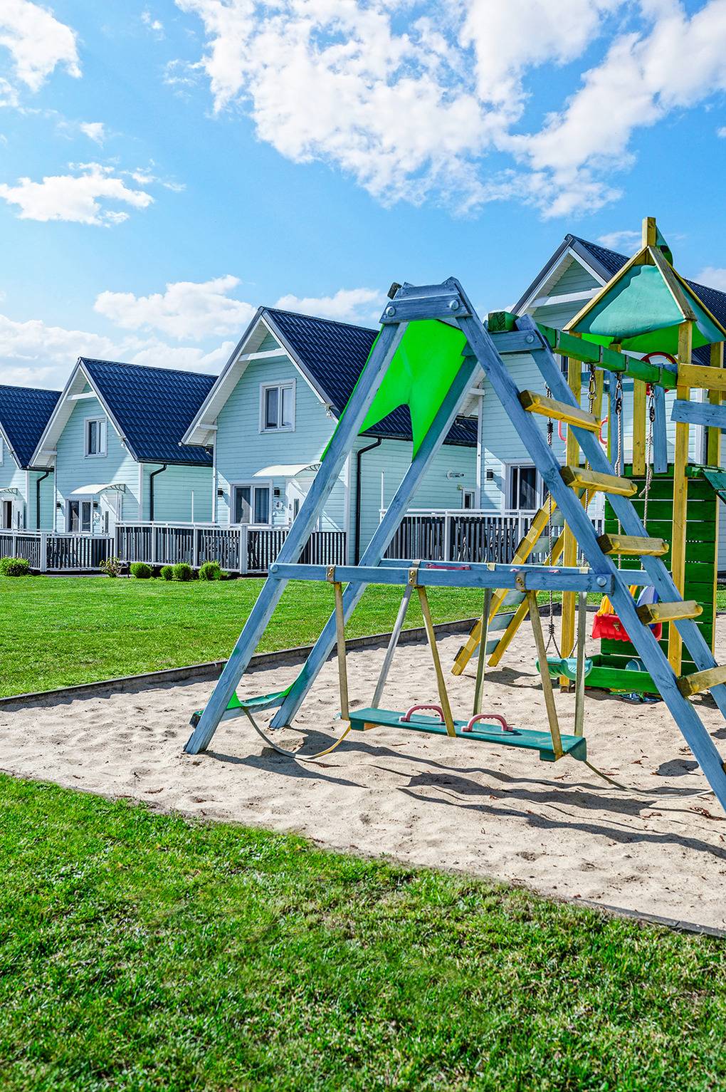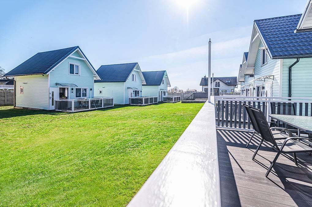 Haus: Schöne Ferienhausanlage mit acht komfortablen Holzhäusern auf einem umzäunten Grundstück. Nichtraucherhäuser. Moderne Einrichtung mit viel Liebe zum Detail. Kostenloses Internet über W-Lan. Spülmaschine. Zentralheizung. Terrasse mit Sitzmöbeln, Grill. Spielplatz mit Sandkasten, Klettergerüst, Rutsche, Schaukeln zur gemeinschaftlichen Nutzung. 2 Pkw-Stellplätze/Haus auf dem abgeschlossenen Grundstück.