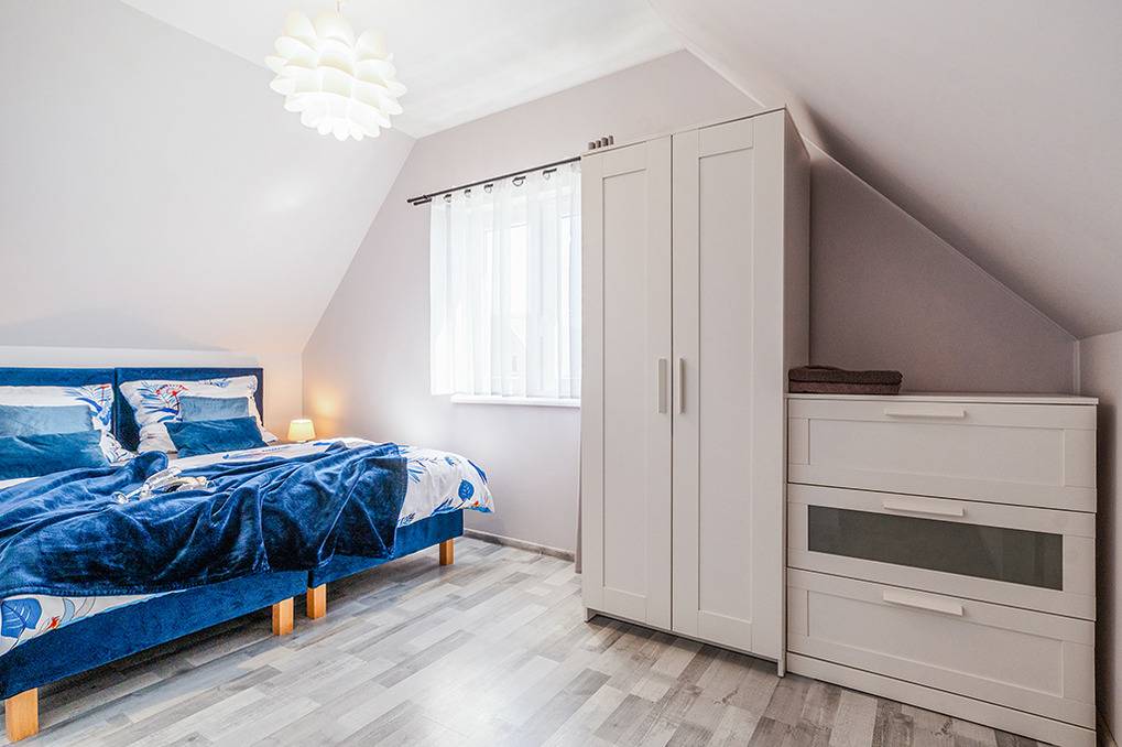 Ort: Ostseebad Misdroy, Ortsteil Lubin. Kleiner, ruhiger Ort nur 6 km von Misdroy entfernt. Idyllische Lage auf den Hügeln der Insel Wolin mit einem herrlichen Blick auf den Wicko Wielkie See, einer großen Bucht des Stettiner Haffs. Restaurant 500 m, Lebensmittelgeschäft in Wapnica 2 km. Naturstrand 700 m mit flachem Wasser, ideal für Familien mit Kindern. Weiterer Strand mit Liegen, Hängematten, kleinem Spielplatz in Wapnica 2 km. Aussichtspunkt Grodzisko Lubin mit Cafe 700 m, von hier herrlicher Blick von der Steilküste auf das Stettiner Haff.