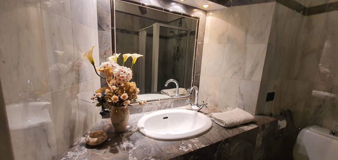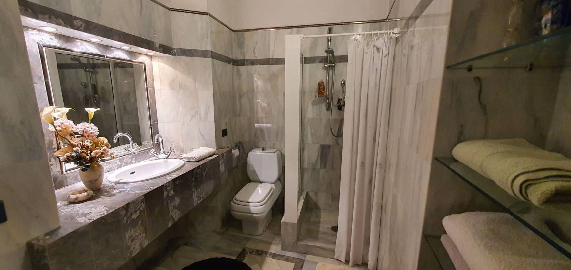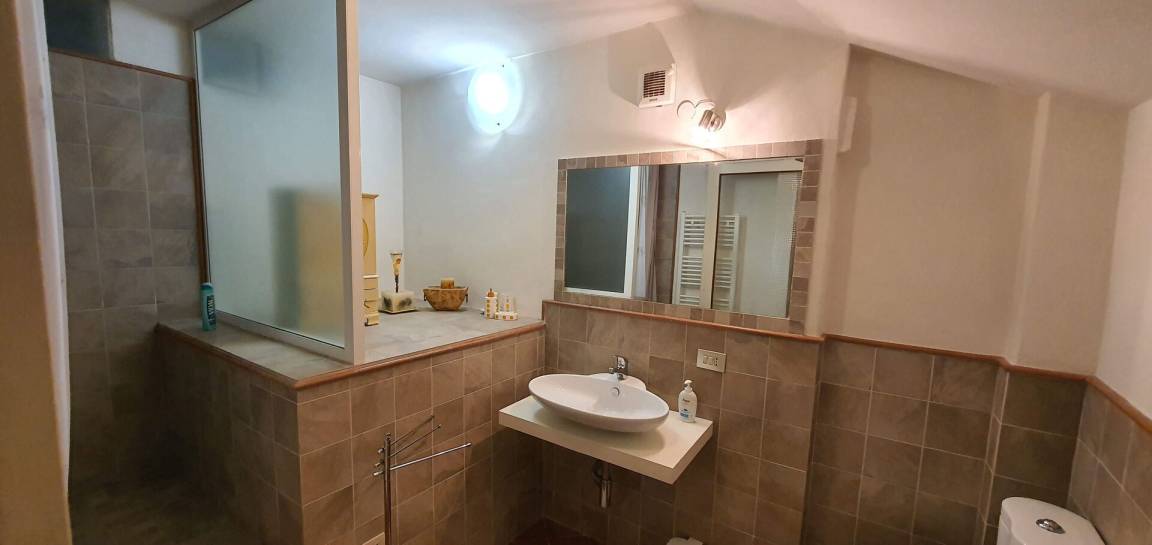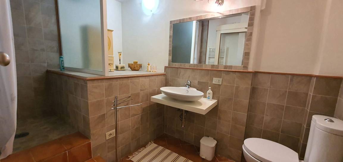 Badezimmer 2: Waschbecken, WC, Dusche.
