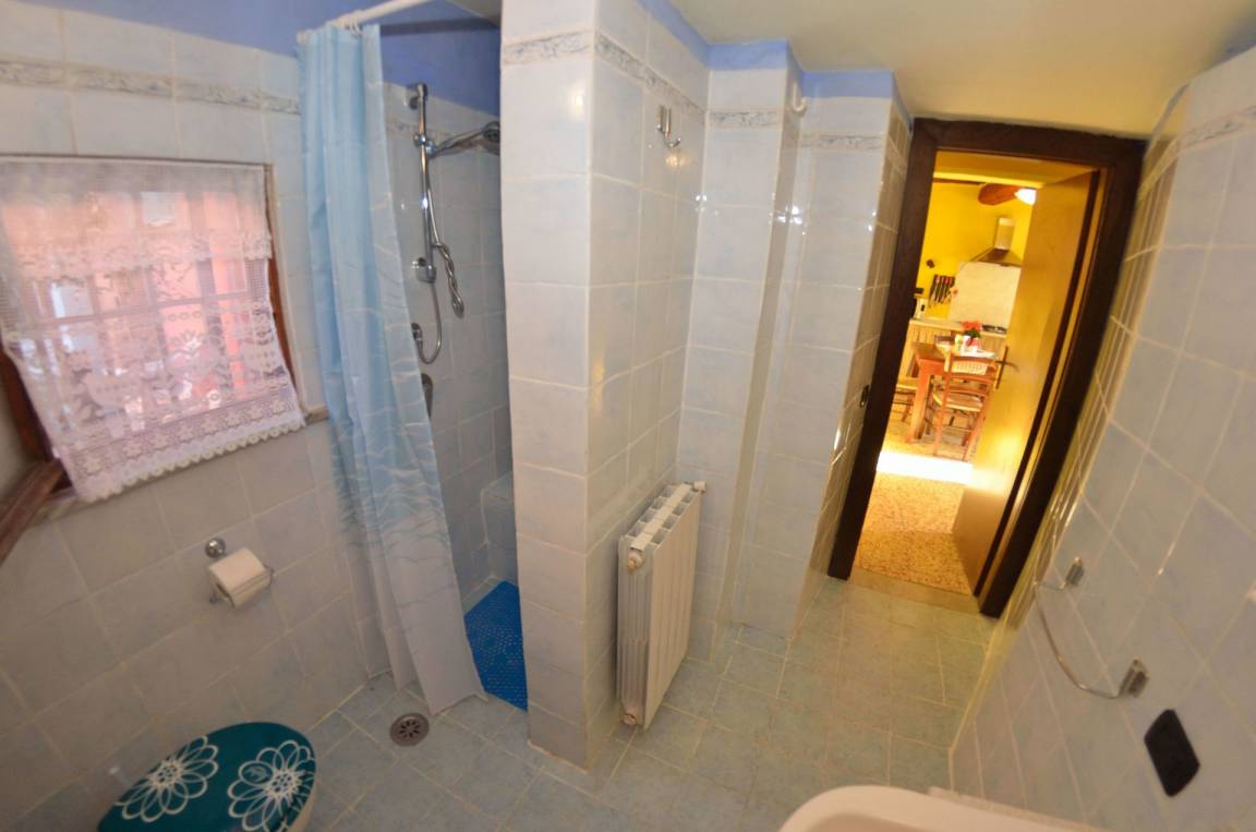 Badezimmer: Waschbecken, WC, Bidet, Dusche, Fliegengitter.