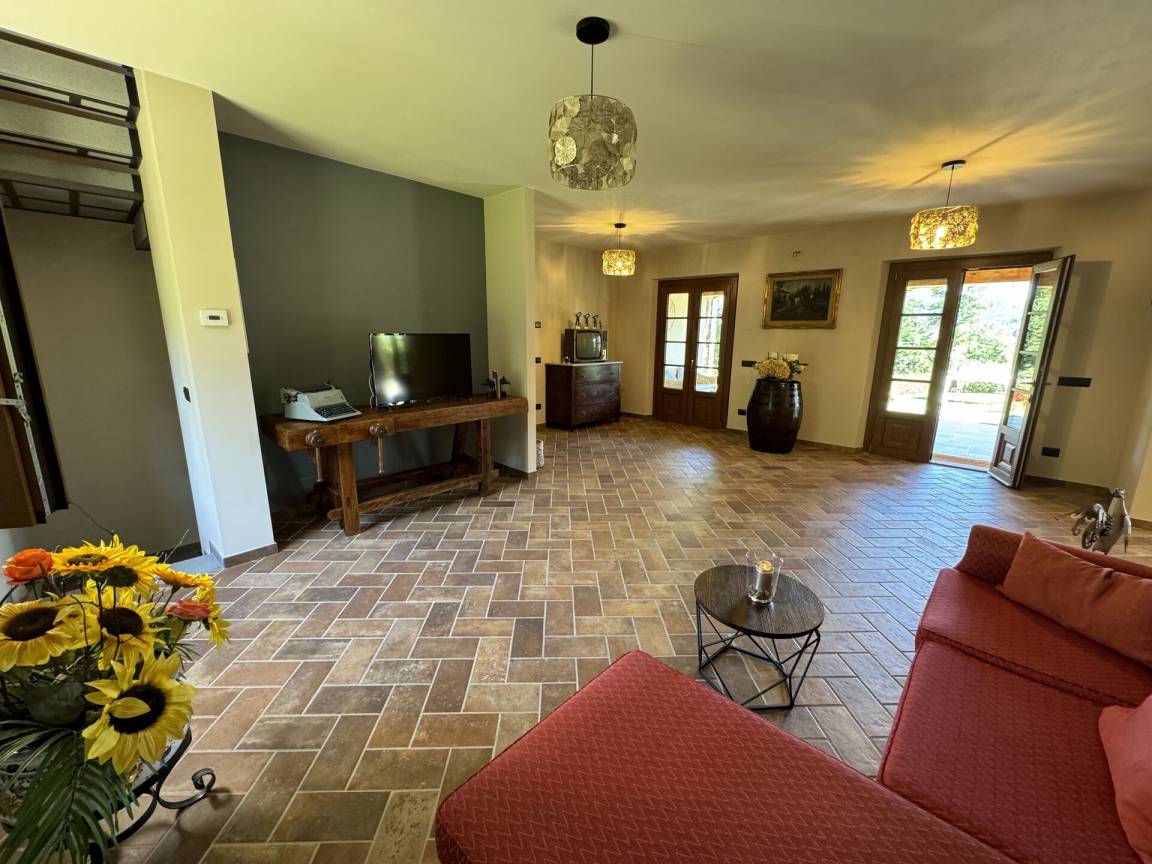 Wohnzimmer: Sofa (Personen: 4), WiFi Internet, Klimaanlage, TV, Ausgang auf den Garten.