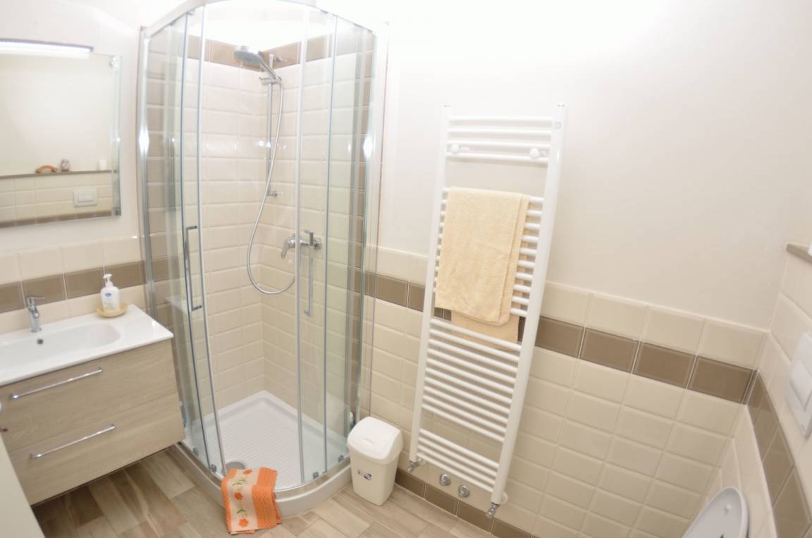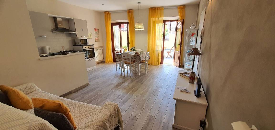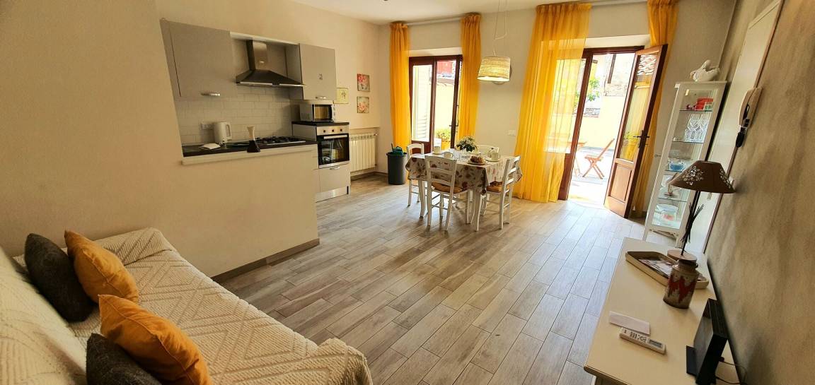 Wohnküche: gut ausgestattete Küche, Esstisch (Personen: 4), Spülmaschine, Kühlschrank, Mikrowelle, Ofen, Italienische Kaffeemaschine, Amerikanische Kaffeemaschine, Waschmaschine, Doppel-Schlafsofa, Klimaanlage, Ausgang auf die Terrasse.