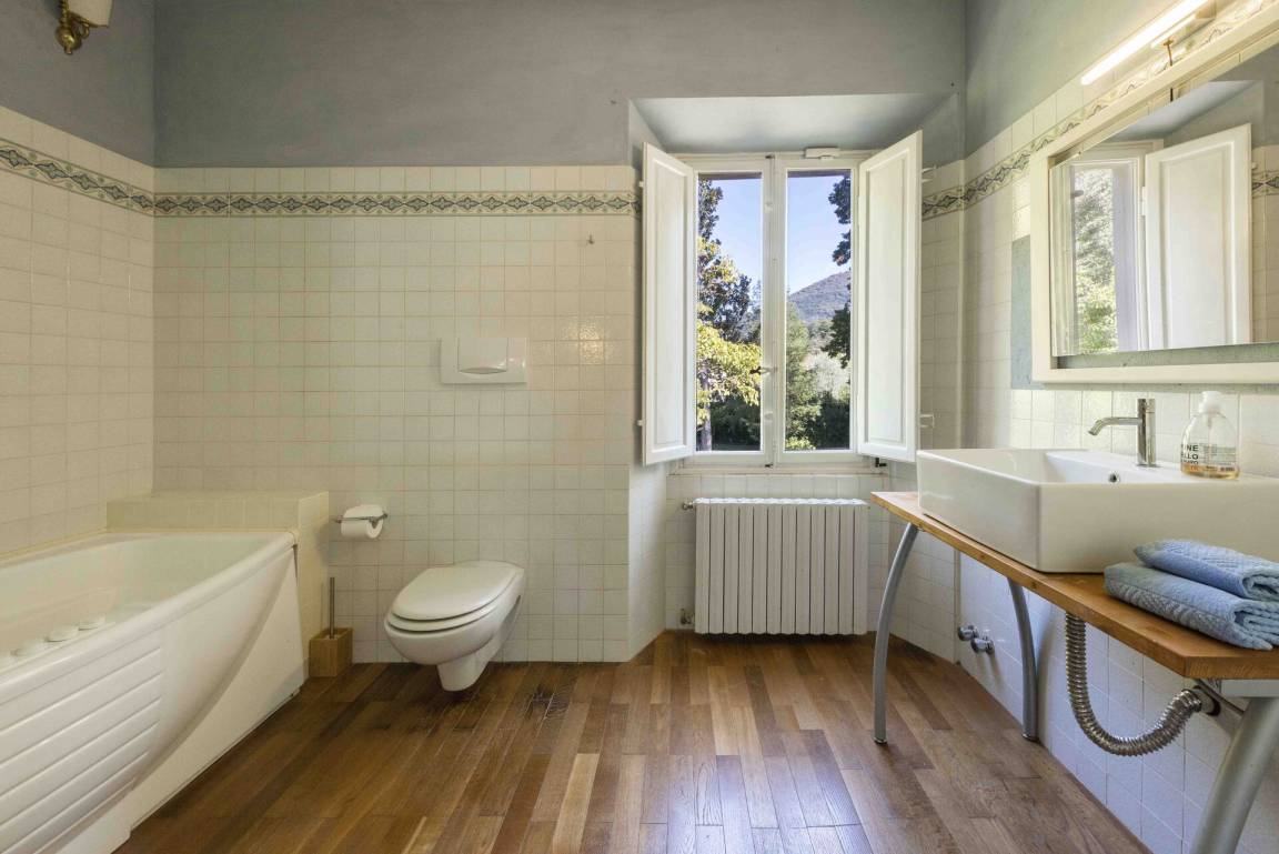 Badezimmer 2: Waschbecken, WC, Bidet, Badewanne, Dusche.