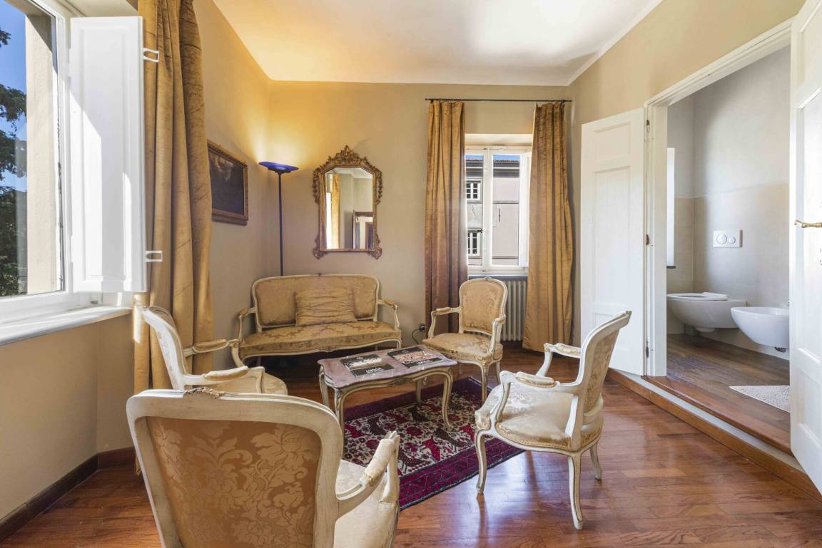 Schlafzimmer mit Bad: Doppelbett, WiFi Internet, Klimaanlage, TV, zwei Sofas, Waschbecken, WC, Bidet, Dusche.