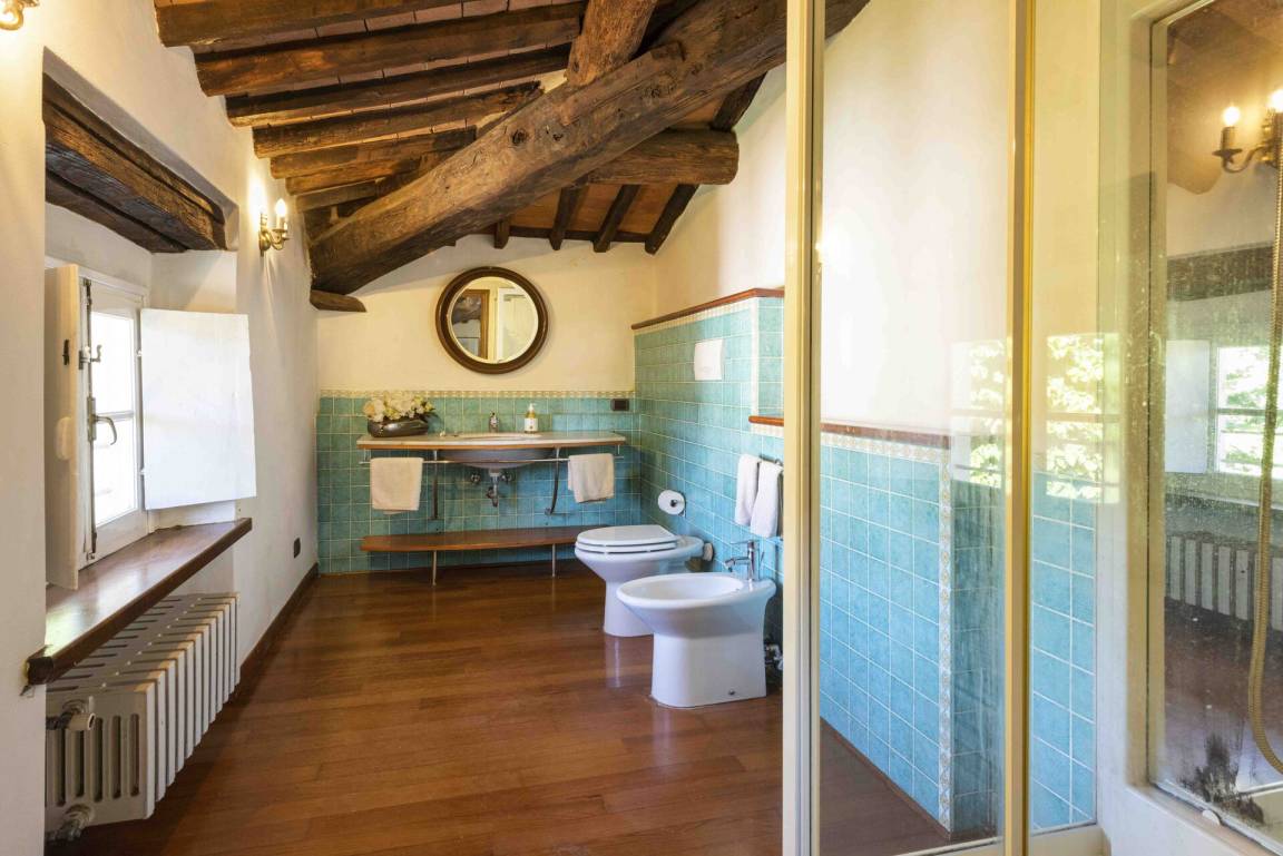 Badezimmer 1: Waschbecken, WC, Bidet, Dusche.