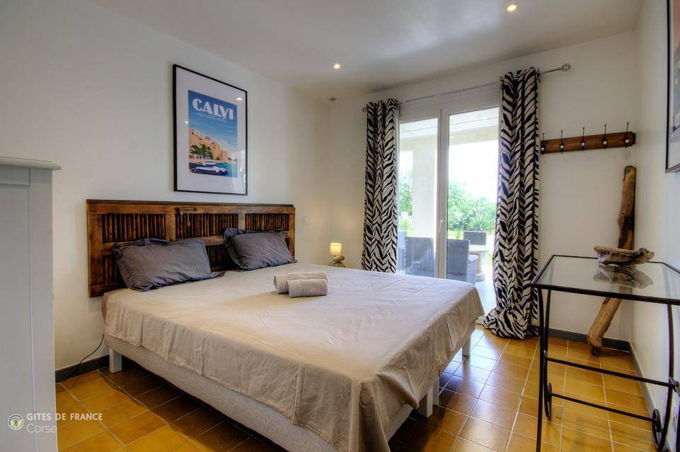 - 1 Zimmer mit 1 Bett 160x200 cm mit direktem Zugang zur Terrasse.
