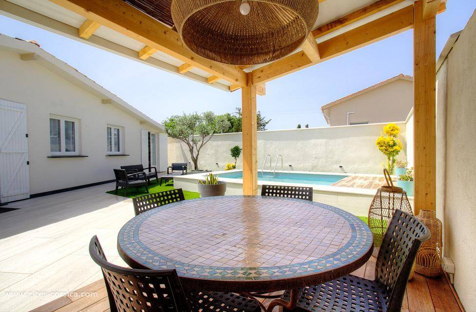 „La maison est dans un quartier très calme, c'est vraiment paisible. Elle est joliment décorée, fonctionnelle, confortable. La piscine est très agréable pour un moment de détente. Elle est située à 7 minutes de l'aéroport et 20 mns de Bastia en longeant mer et paillottes pour profiter de cette magnifique vue, le temps d'un bon repas. A proximité des petits commerces, très pratique. Nous avons été très bien accueilli par les propriétaires, et nous avons apprécié cette hospitalité. Nous reviendrons sans hésiter.“