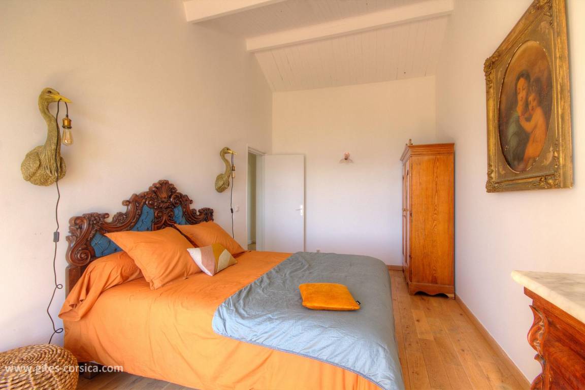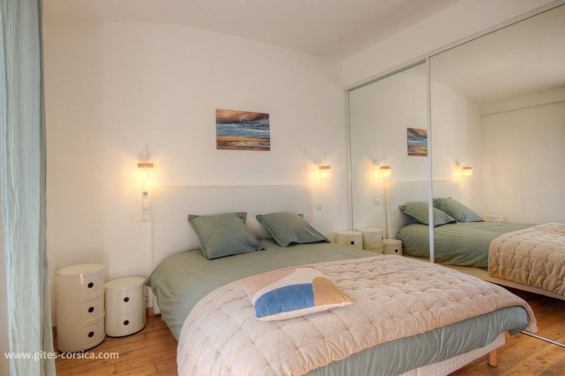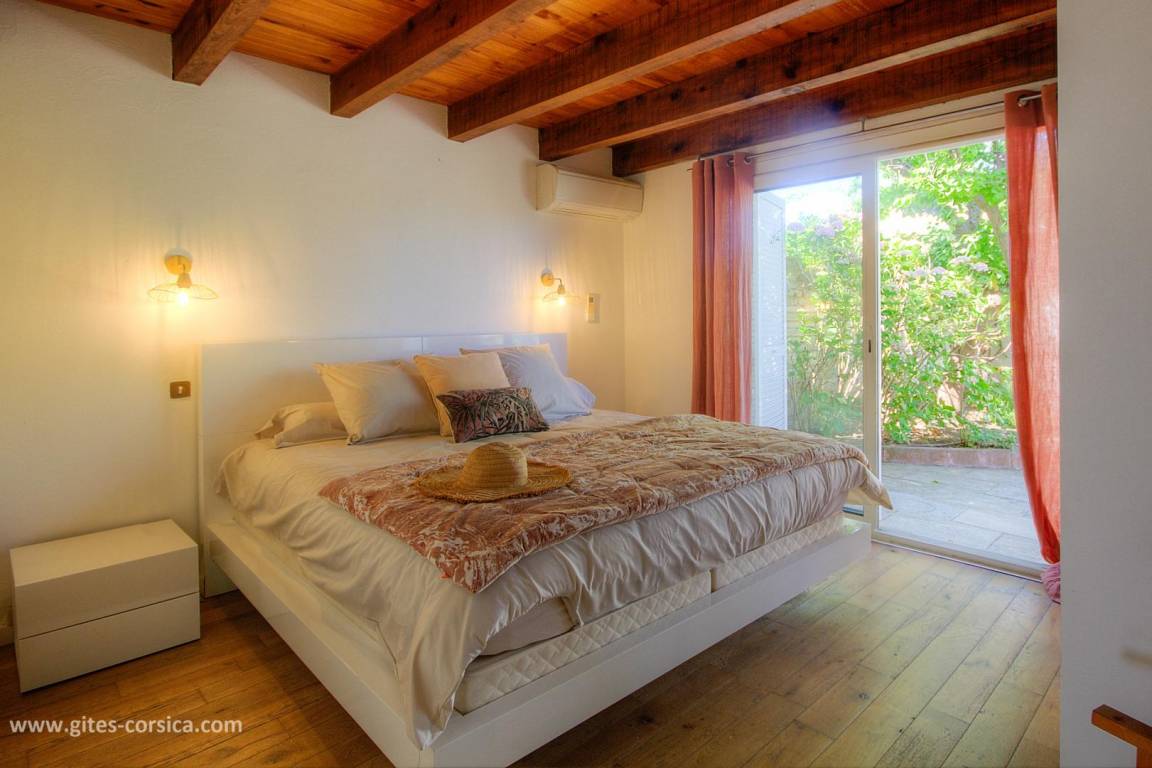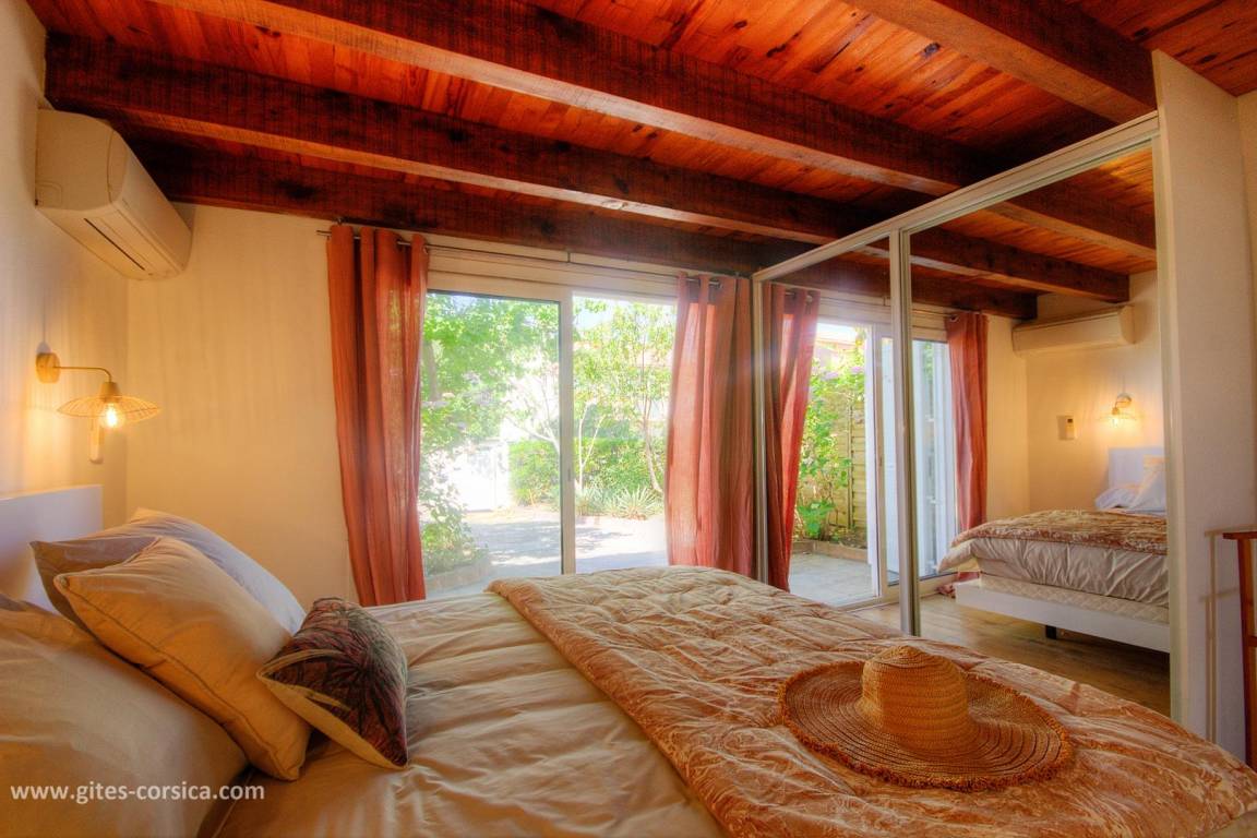 - 2 Schlafzimmer, jeweils mit einem Kingsize-Bett (180 x 200 cm), zugänglich von der Terrasse oder aus dem Obergeschoss (kein direkter Zugang zu den anderen Räumen im Erdgeschoss)