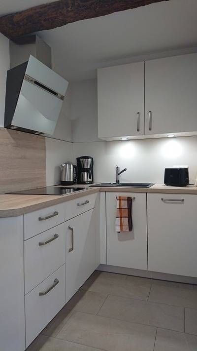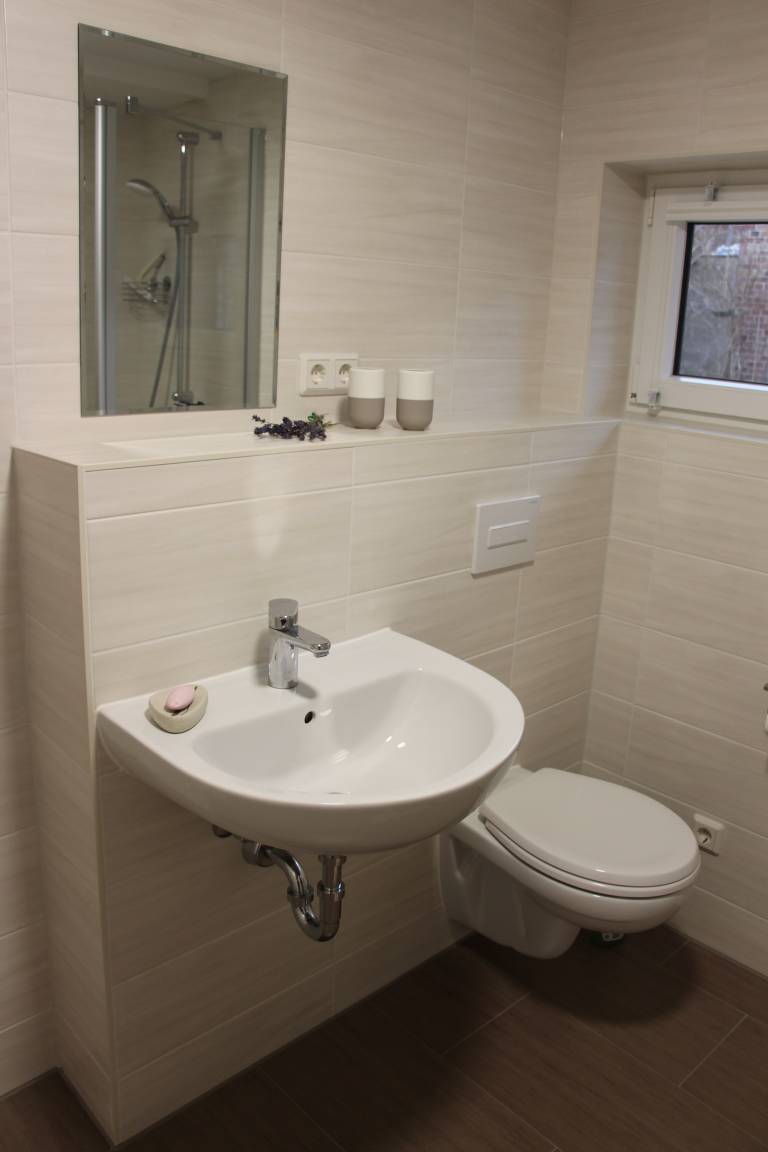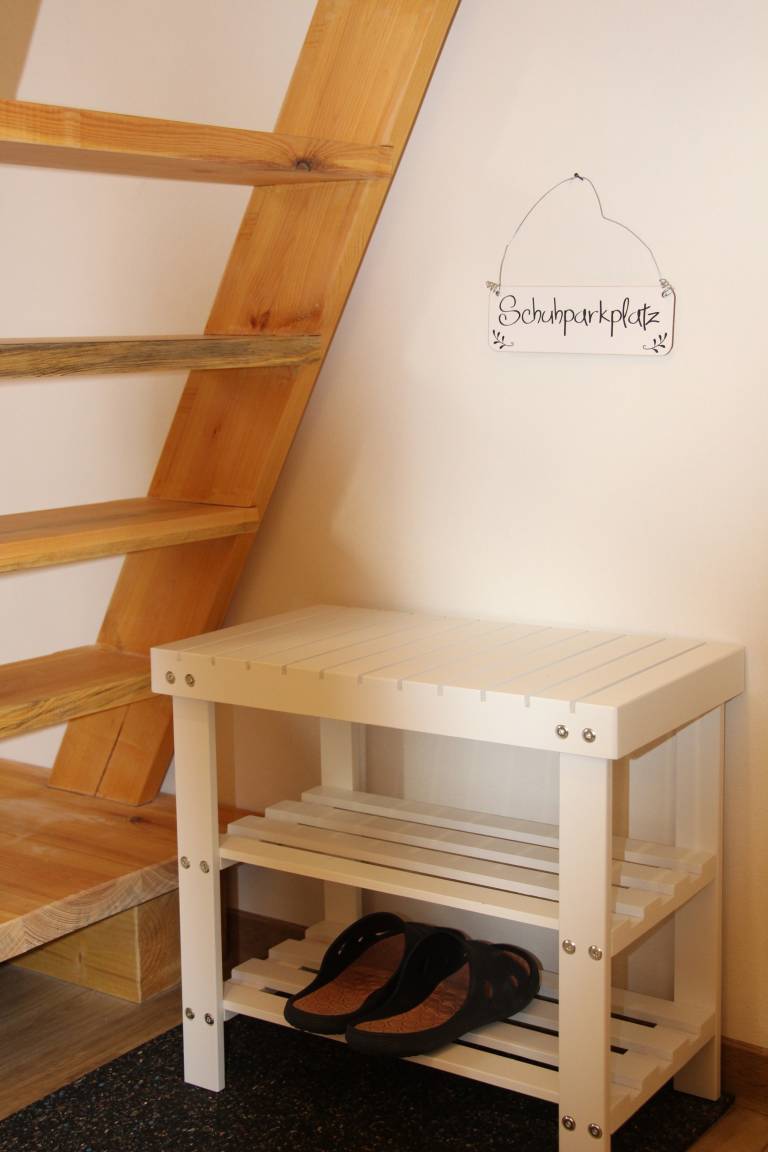 Auf rd. 60 qm bietet die familienfreundliche Ferienwohnung Platz für bis zu 4 Personen und ein Kleinkind. Im Erdgeschoss finden Sie eine vollausgestattete Küche, ein Wohnzimmer mit Flachbild-TV, ein Bad mit Dusche sowie ein Schlafzimmer mit Doppelbett und Kleinkindbett (Länge 1,20 m). Über eine Raumspartreppe gelangen Sie ins Obergeschoss zum zweiten Schlafzimmer (2 Einzelbetten). Zur Ferienwohnung gehört ein Hof mit Terrasse. W-Lan sowie ein Pkw-Stellplatz auf dem Gelände sind vorhanden. Die Wohnung ist barrierefrei zu erreichen.