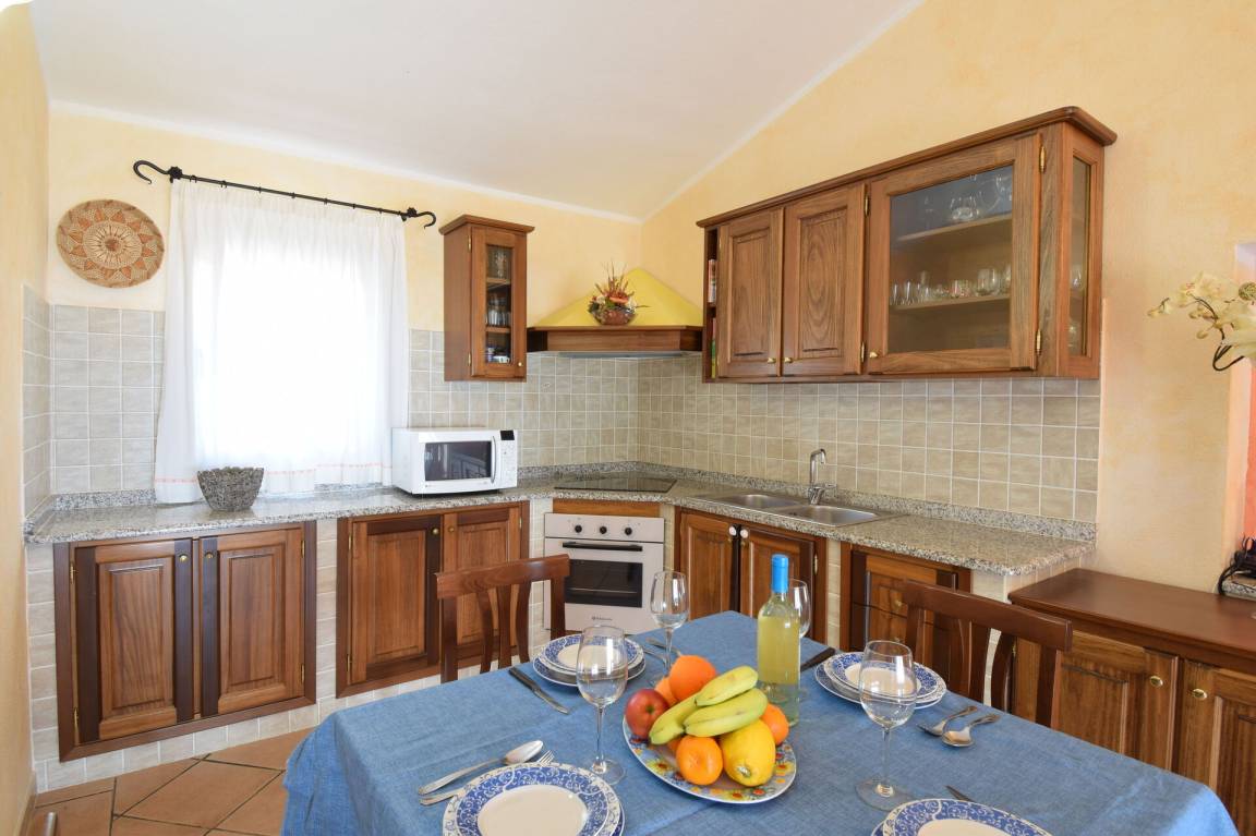 Wohnküche: gut ausgestattete Küche, Esstisch, Kühlschrank, Tiefkühler, Mikrowelle, Herd, Ofen, Italienische Kaffeemaschine, Sofa bed, Klimaanlage, TV, Ausgang auf den Balkon.