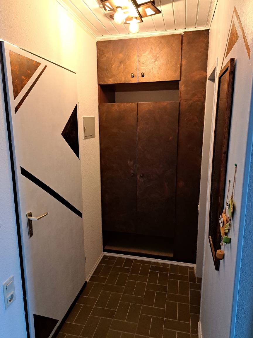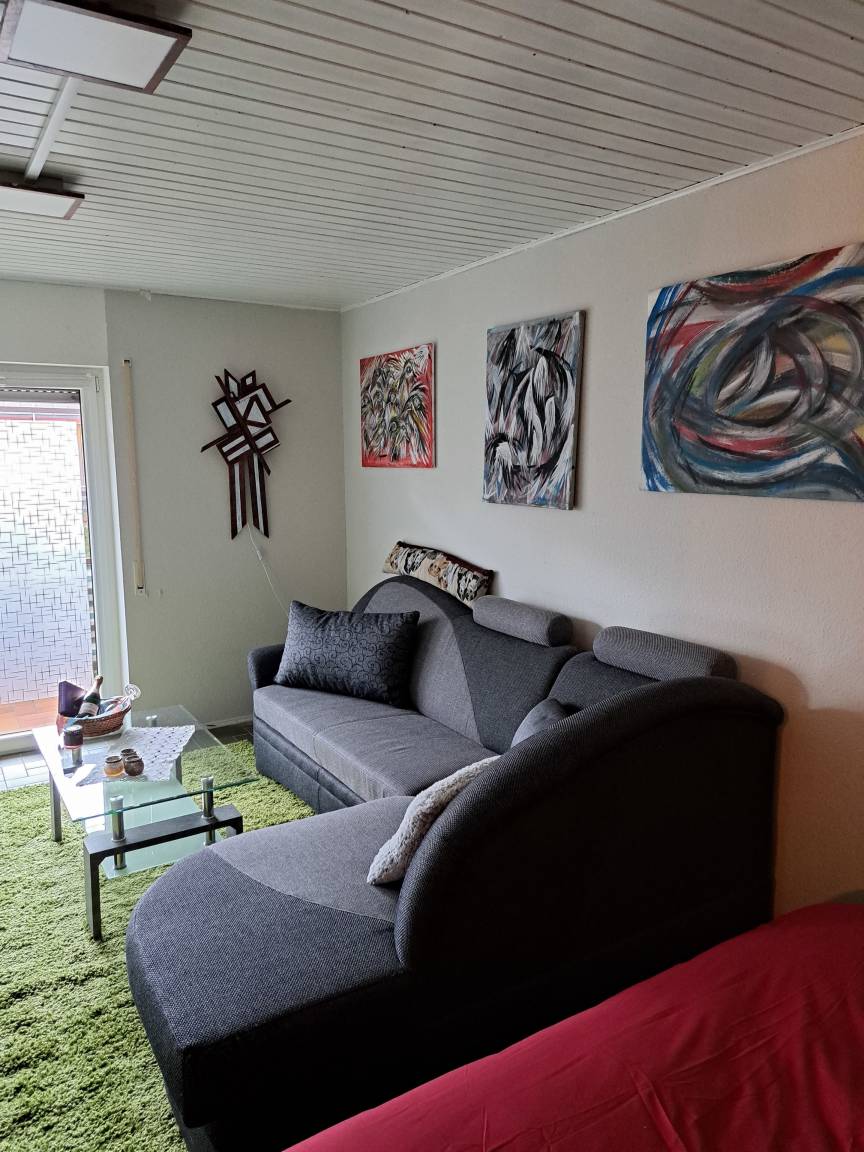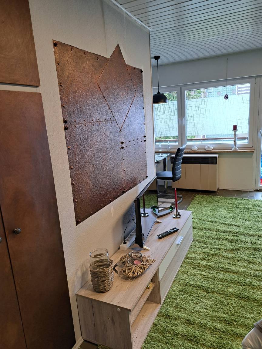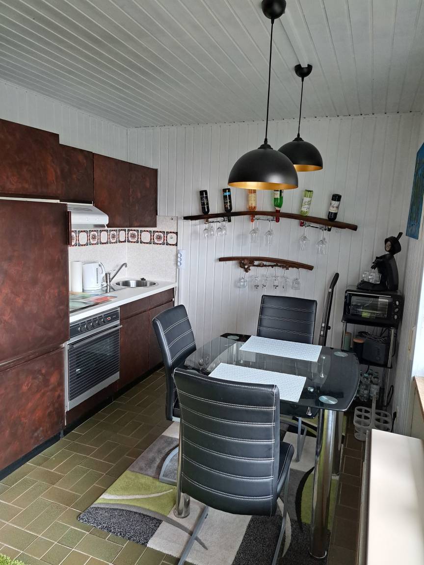 Gemütlich und geschmackvoll zum Wohlfühlen eingerichtete Ein-Zimmer-Ferienwohnung mit Küchenzeile, Essbereich im 1.Obergeschoss mit großem überdachten Balkon inclusiv einem Strandkorb zum relaxen.