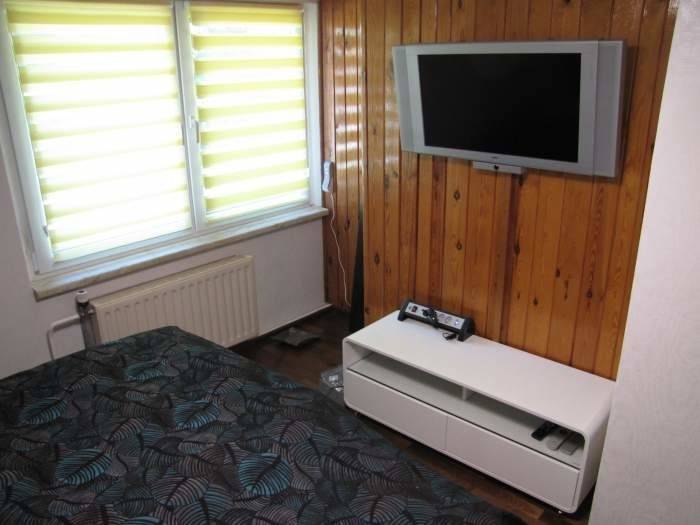 Mit Büchern, Spielsachen und Fernseher mit DVD-Player ist hier auch für die Unterhaltung gesorgt. Im Haus gibt es zwei Schlafzimmer mit Doppelbetten und eine Schlafcouch im Wohnzimmer. Vom Wohnzimmer mit großem Sofa gelangt man auf die Terrasse.