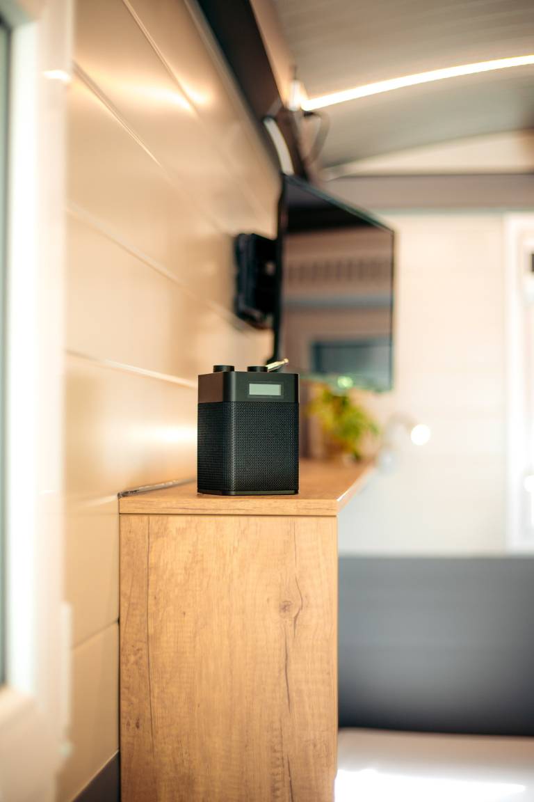 Kleine, moderne, beheizbare Camping-Lodge, die sich direkt auf unserem Campingplatz-Gelände befindet. Die Camping-Lodge steht auf einem Trailer und versprüht dadurch wahren Camping-Flair.