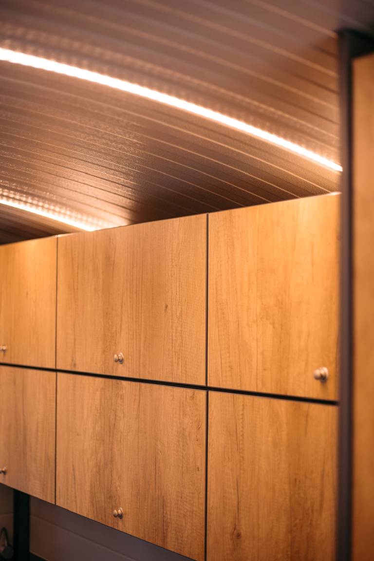 Direkt an der Lodge befindet sich eine Terrasse mit Outdoor-Möbeln zum Chillen. Die Terrassen-Seite der Lodge kann vollständig geöffnet werden und fungiert als Sonnendach über der Terrasse.