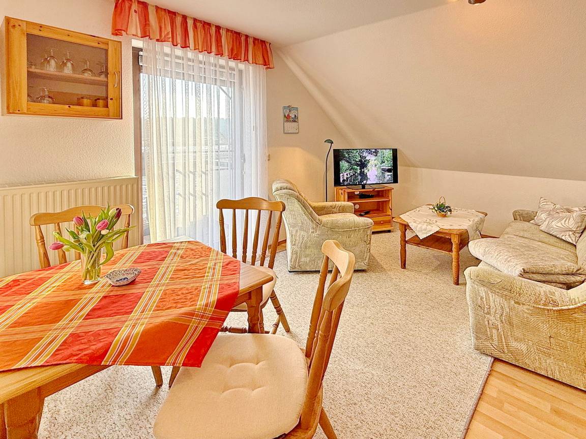 Die Ferienwohnung befindet sich im 1. Obergeschoss des Hauses "Zum Storchennest". Hier können Sie sich auf eine gemütliche und ruhige Atmosphäre freuen. Für Ihre Fahrräder steht ein Fahrradabstellraum zur Verfügung und Ihr Auto können Sie bequem auf dem Parkplatz abstellen.