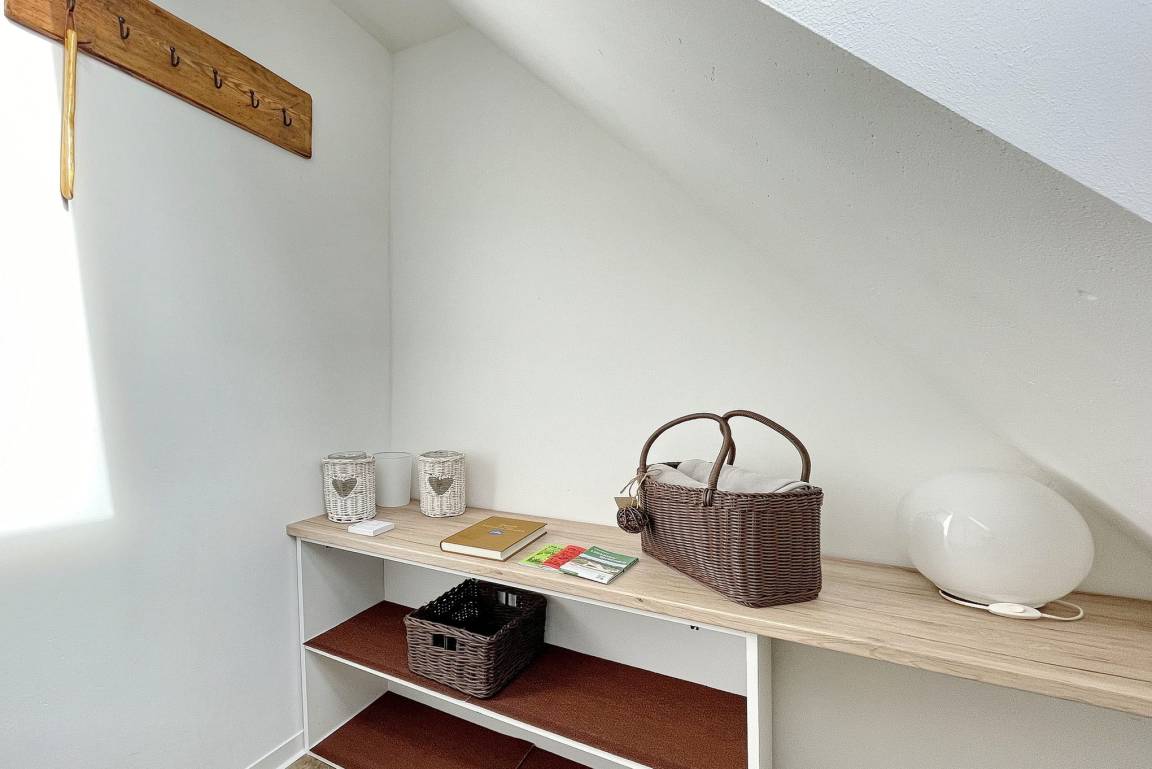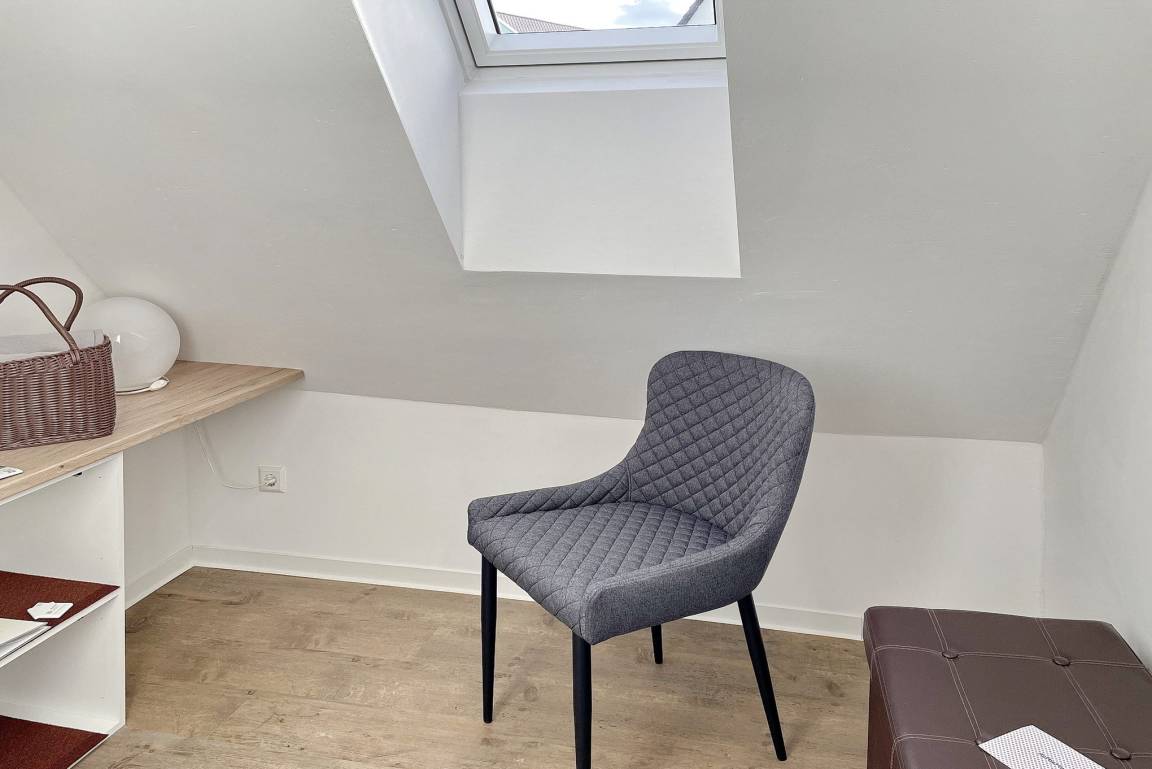 Über die Holztreppe gelangen Sie zum Eingang der Wohnung. Das erste Zimmer bietet Ihnen eine voll ausgestatte Küchenzeile, sowie genug Ablagemöglichkeiten im Flurbereich. Sie werden sich im geräumigen Wohnzimmer sehr wohl fühlen. Es ist mit einer gemütlichen Couch, einem Esstisch mit 2 Stühlen und einem Flachbild-TV ausgestattet. Das Badezimmer ist modern saniert, mit einer ebenerdigen Dusche und einem Dachfenster.