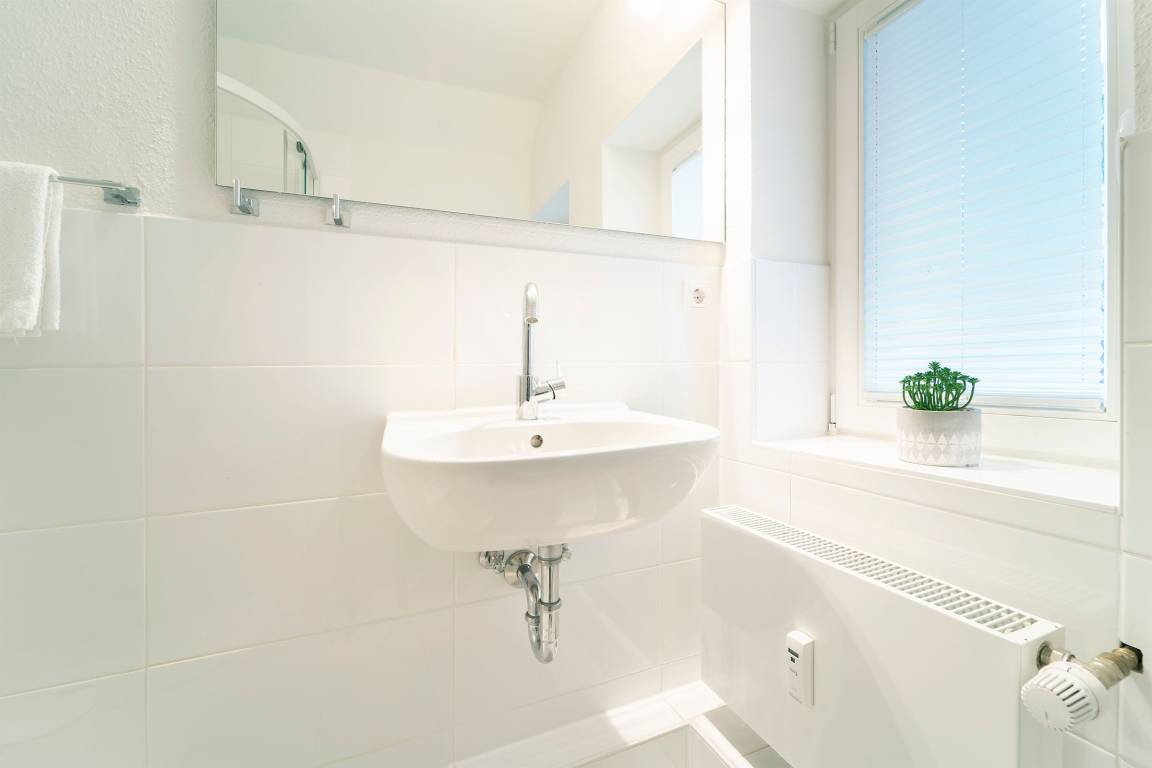 „Die Wohnung ist sehr geschmackvoll eingerichtet. An den Fenstern sind Plisees und Gardinen. Die Küche ist super Ausgestattet, die E-Geräte sind nagelneu, sogar mit Spülmaschine. Direkt vor der Haustür ist ein Bäcker und ein Obst und Gemüsehändler.“