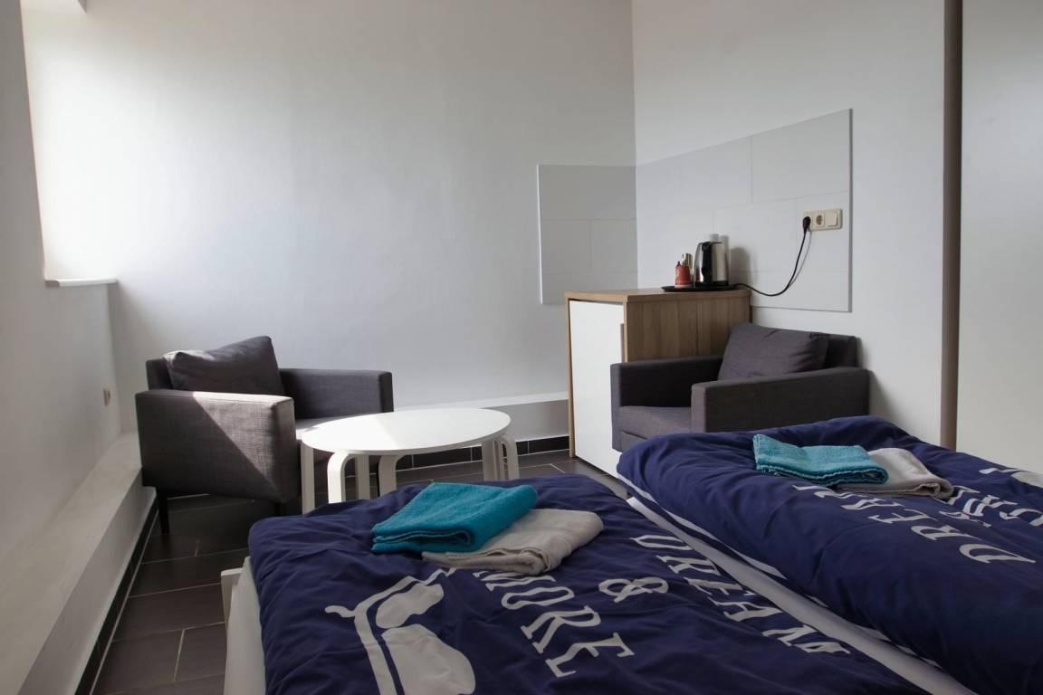 Die Zimmer sind eingerichtet mit einem Kleiderschrank inklusive ausziehbarem Schuhregal und großen Schubladen. Von der Unterkunft aus haben Sie einen schönen Blick auf die Trave und auf das Werftgeschehen, da die Unterkunft direkt vor dem Kranplatz liegt. Innerhalb der Woche werden hier Boote gekrant, was durchaus spannend sein kann, dies einmal aus direkter Nähe und ohne Gefahr zu beobachten. Ein schönes Doppelbett mit hochwertiger Matratze (zwei Härtegrade) komplettiert die Einrichtung. Im Zimmer befinden sich Kühlschrank und Wasserkocher. Eine Grundausstattung Geschirr kann ausgeliehen werden. Handtücher, Bettwäsche, Strom und Wasser sind im Preis inbegriffen.