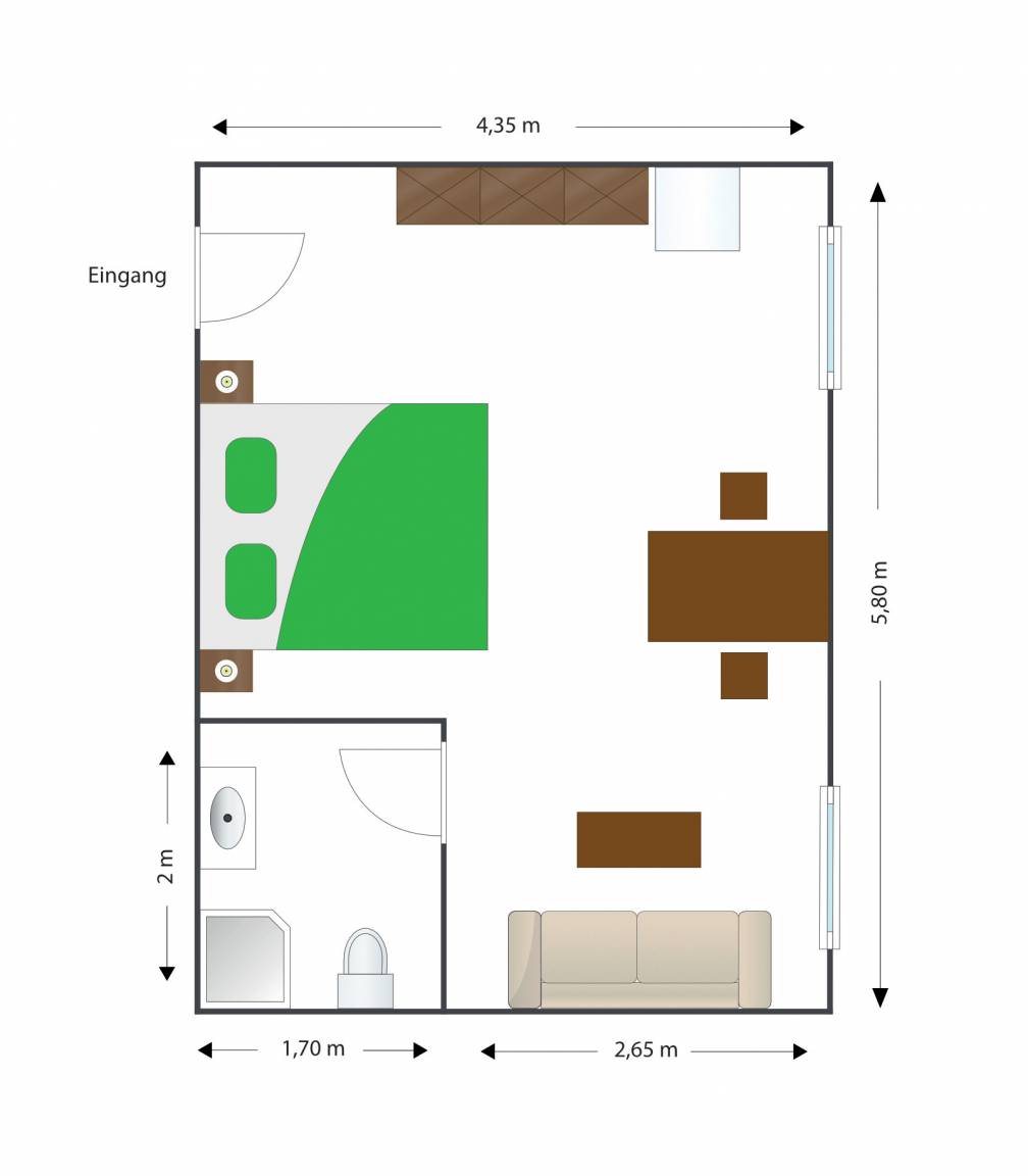 25 m² Privatzimmer ∙ 1 Schlafzimmer ∙ 2 Gäste