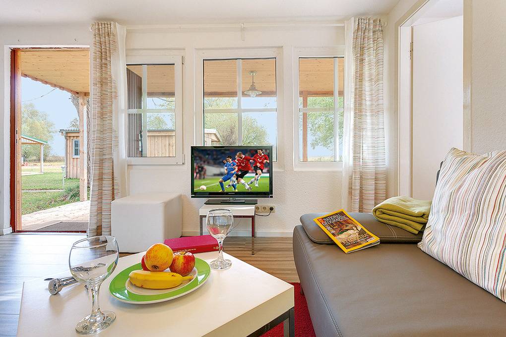 Alle Bungalows mit moderner, geschmackvoller Einrichtung. Jeder Bungalow mit Sat-TV, Internetzugang über W-Lan um das Haupthaus, schöner überdachter Terrasse mit Sitzmöbeln, Sonnenliegen. Nichtraucherhäuser. E-Heizung. 1 Pkw-Stellplatz pro Bungalow.