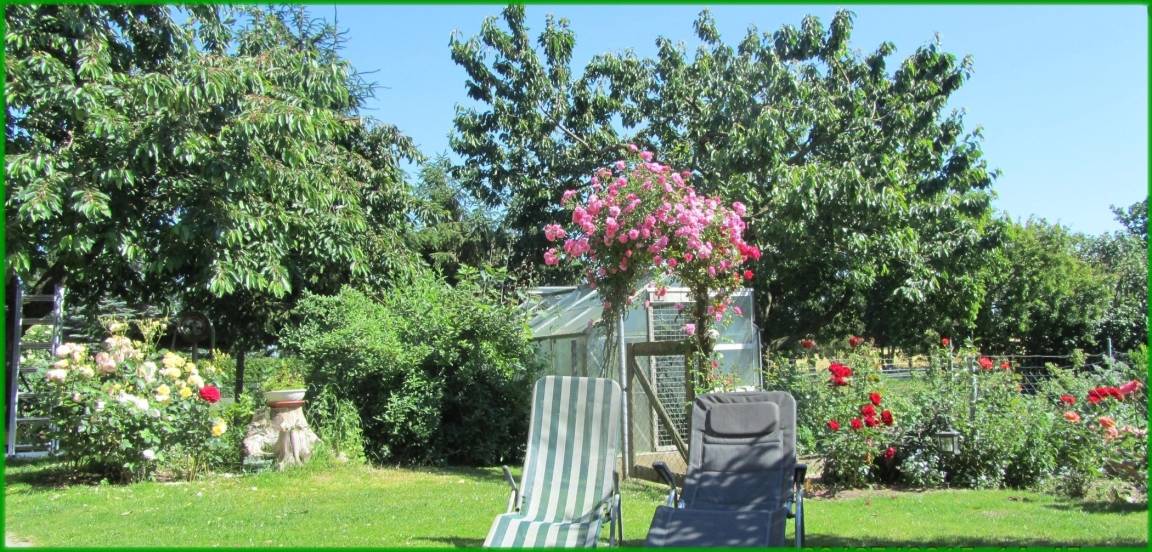Auf unserem 6000 m² großen Grundstück mit Obstbäumen sind auch Tiere zu Hause, wie die Border-Colliehündin Fly, zwei Katzen, Pferde, Kaninchen, Enten und Hühner. Letztere liefern Ihnen das frische Frühstücksei. Kutschfahrten, Reiten und Reitunterricht sind möglich.
