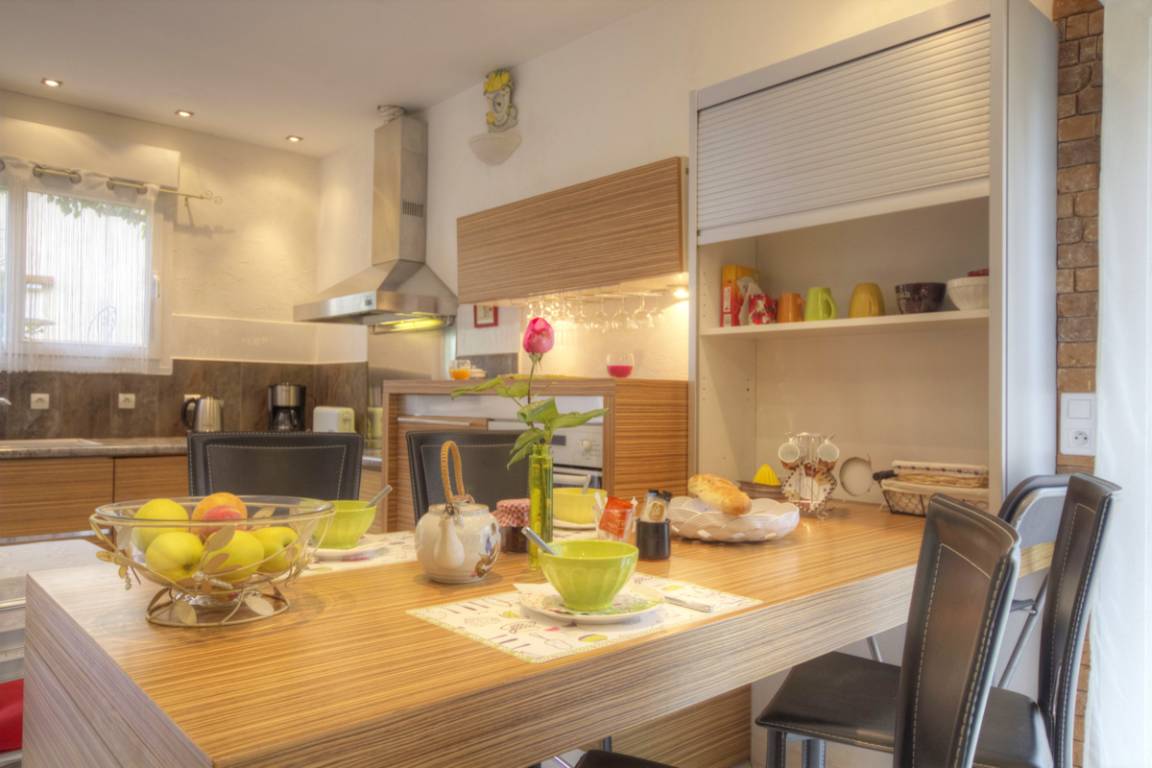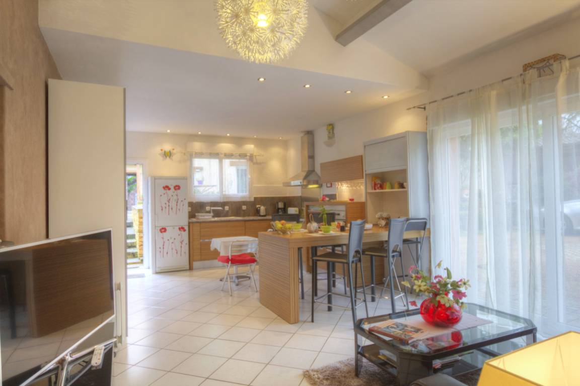 Dominique heißt Sie in seinem für das Val de Saône typischen Anwesen in seiner modernen Gîte willkommen. Ein freistehendes, einstöckiges Haus mit 62 m² Wohnfläche und Südwestausrichtung, einer privaten Terrasse mit Grill und einem schattigen Bereich unter Maulbeerbäumen neben der Eingangstür. Ein großes, helles Wohnzimmer mit moderner und raffinierter Einrichtung bietet Ihnen den Komfort einer zum Wohnzimmer offenen, voll ausgestatteten Küche (1 Schlafsofa für 2 Personen 160) und lädt zum Entspannen ein. Ein gemütliches Schlafzimmer in Rot- und Grautönen bietet 3 Betten (1 Bett 140 und 1 Bett 90). Das Badezimmer ist ein echter Wellnessraum und bietet zusätzlichen Komfort mit Badewanne und Dusche, einem Waschraum (Waschmaschine und Trockner) und WC. Klimatisierte Gîte. Das Grundstück ist umzäunt, ein sicherer Parkplatz, Grünflächen und ein Bowling Green stehen zur Verfügung. Der Ort strahlt Ruhe aus. An der Kreuzung von Dombes, Beaujolais und dem Saône-Tal ist dieses Ferienhaus ideal ge